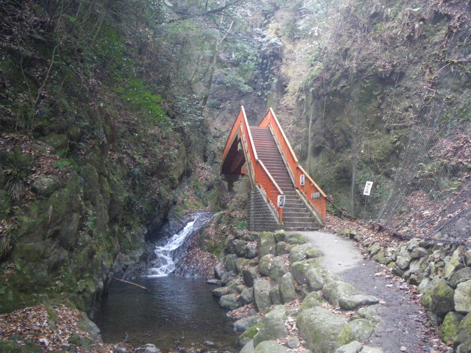 日も空けずリターンマッチ。『丹沢の行者道を歩く;城川隆生(白山書房)』には「金剛滝」(蜀江滝、高さ約30m)は大椚沢上流 愛川町半原塩川添948番地と950番地の間、「胎蔵界滝」(飛龍滝・地蔵滝、高さ約30m)は小松沢の上流 愛川町半原塩川添947番地と948番地の間はあるのだが、大椚沢がどこだか小松沢がどこだかわかるわけもない。