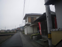 飯尾川を渡ると、ほどなく道の右手に標石。風化が激しく文字は読めない。ここが分岐点では、と右折し県道を離れ南にすすむ。左手に立派な白壁の蔵。