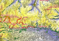 記念 館を離れ、中沢中学脇を進み、都井沢交差点手前を北に折れる。都井沢交差点からは結構大きな道が山頂に続いているのだが、ここはおとなしくEZナビのガイドに従う。先に進む。小道を抜け、あろうことか竹薮の中にリードされる。だいじょうぶか?味気ない道路みちではなく、野趣豊かなルートを選んでくれたのであろうと、とりあえず進む。次第に道など無きに等しい状況に。薮を掻き分け進む。枝に足をとられ、転びつつ、まろびつつ、進む。心の中で、「勘弁してくれ」、と。大転倒数回を経て、右手に車道らしきガードレールが見える。一安心。ガードレールを乗り越え車道に。