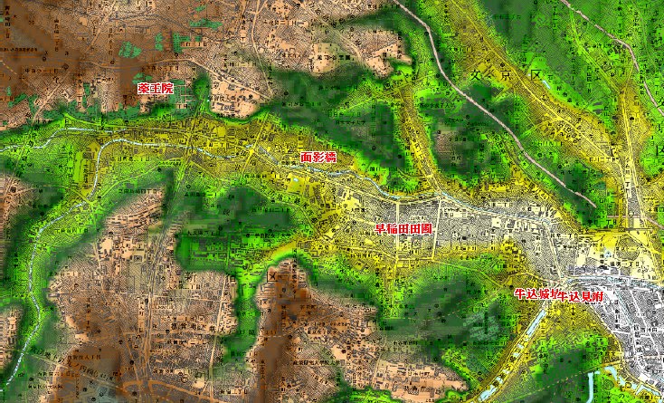 川と言えば、この都立山吹高校あたりで加二川に合わさる川があった。蟹川(金川、とも)と呼ばれるその川の源頭部は新宿歌舞伎町あたりにあった池。そこから、新宿文化センター通り、職安通り下、戸山ハイツ、馬場下町、穴八幡宮、早稲田鶴巻町と進み都立山吹高あたりで加二川と合わさり、神田川に注いだ、と言う。こちらは加二川と違って台地での比高差があまりなく、淀橋台地と豊島台地の裂け目を流れる水路、とか。