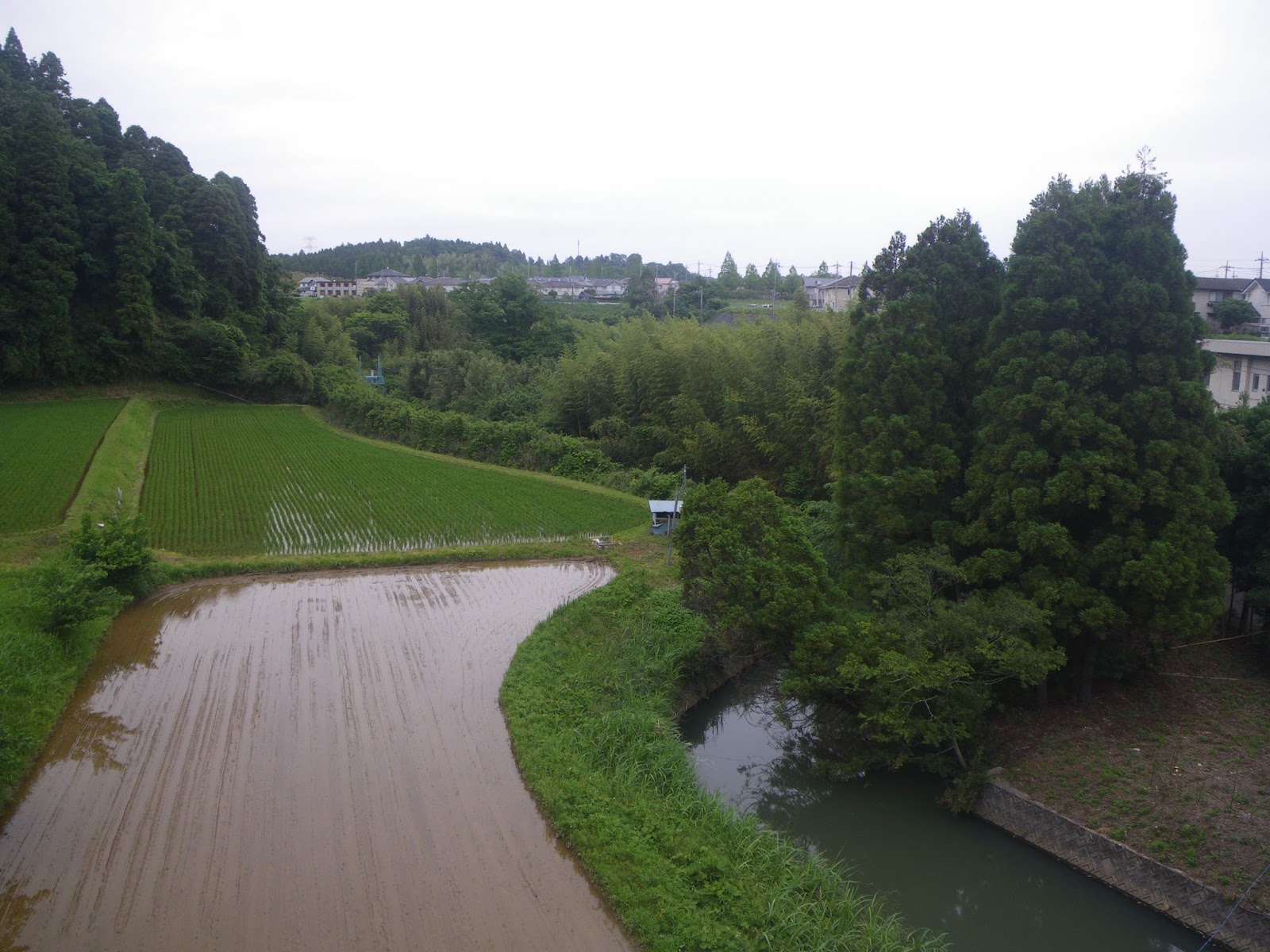 開渠となった村田川に小山町集会所辺りで南の広い谷津田からの水路が合流する。この水路は村田川の源流のひとつ。源流点は南の外房有料道路を越えた茂原市大沢地区にある真名カントリーの山裾辺りである。