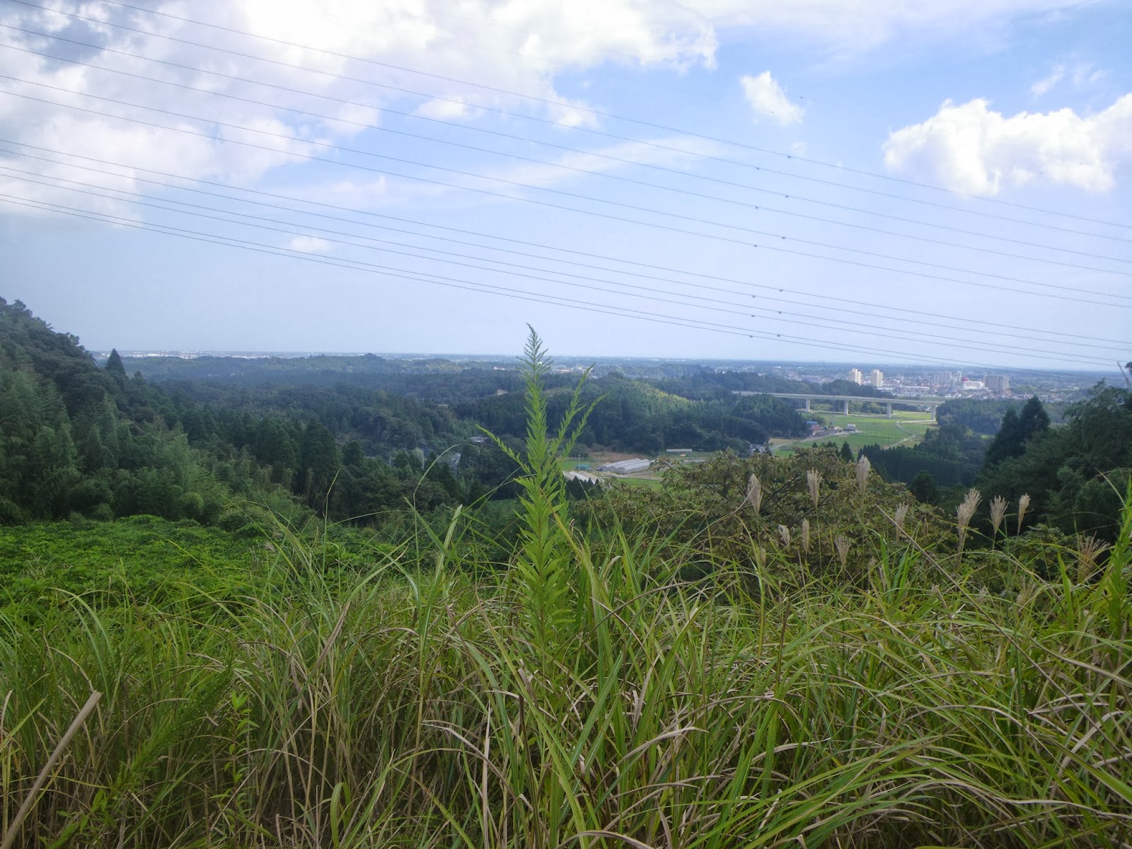善勝寺をお参りした後、切り通しの東口、というか、旧土気トンネルの東口辺りから東の鉄路跡の景観が如何なるものか、残土置き場となった切り通しの埋め戻しの場所に入り込む。残土の上には雑草が茂り、藪漕ぎと言うか、草漕ぎをしながら残土埋め立て東端に。そこから先は深い谷となり、先に進むのは難しそう。地図には東に向かう細路が見えるのでそれらしき道筋を藪漕ぎしたのだが、先日の沢登りで出合ったマムシを思い出し、途中で撤退し、切り通し・旧トンネル東端と思しき辺りから急勾配の鉄路を想い、且つ大網方面の眺望を楽しむことに。房総丘陵と九十九里浜への境目との言葉のとおり、眼下に大網白里や九十九里平野の景観が広がっていた。