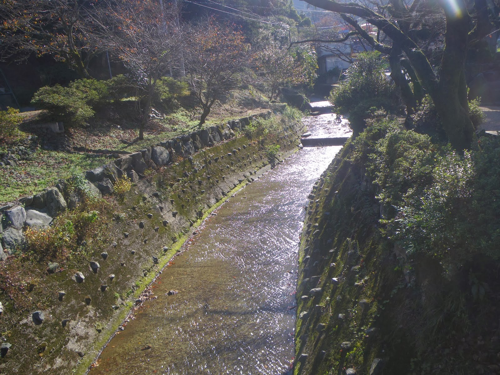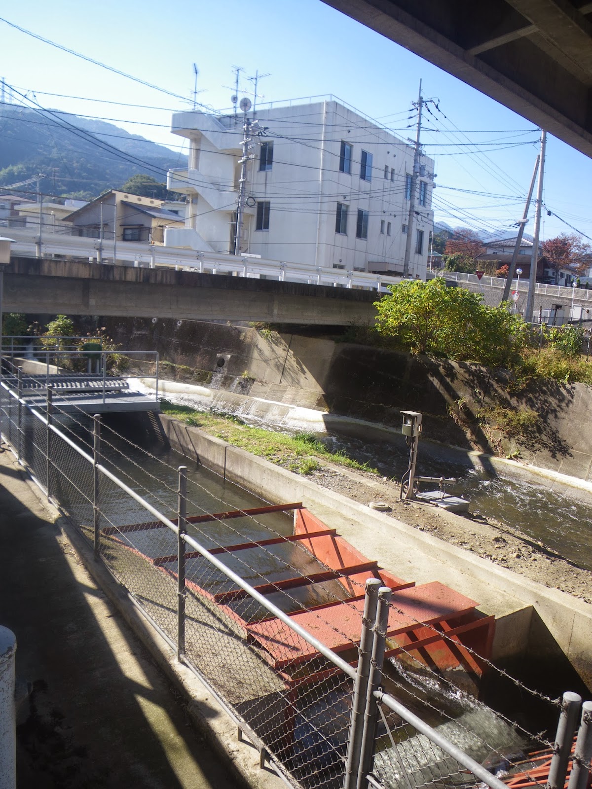 その時は、疏水とか用水でよく見られる用水路や隧道から一度川筋に水を流し、再び川より取水し再び用水として流れているのだろうと思い、この水路が銅山川疏水の流路かとも思っていた(実際は間違い)。