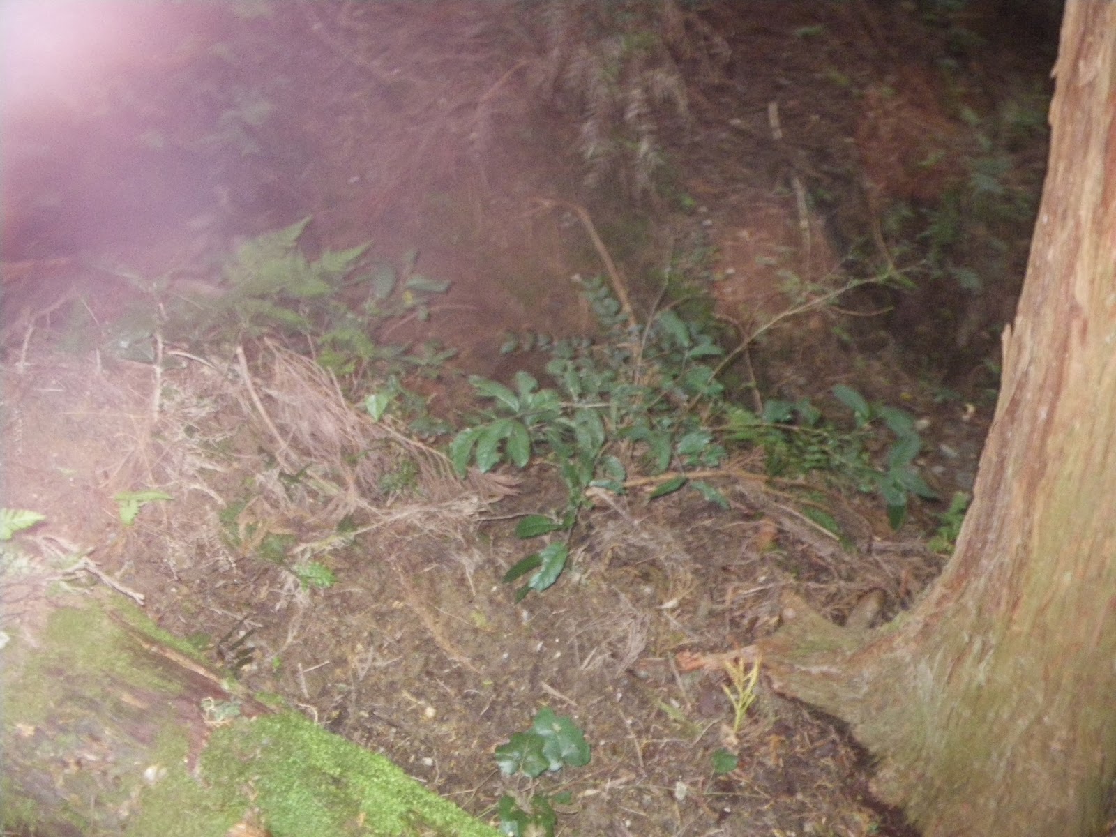 Google Mapで隧道西出口を見るに、丘を越えた中曽根中高区配水場辺りから先に水路らしきものが見える。ミカン畑の丘の中に吸い込まれている隧道入口辺りから、丘を直線に上る道がある。とりあえず坂を上る。登り切った先で道が切れるが、藪漕ぎで先に進み下りはじめてはみたのだが、藪とはいいながら足元がさっぱりみえない。