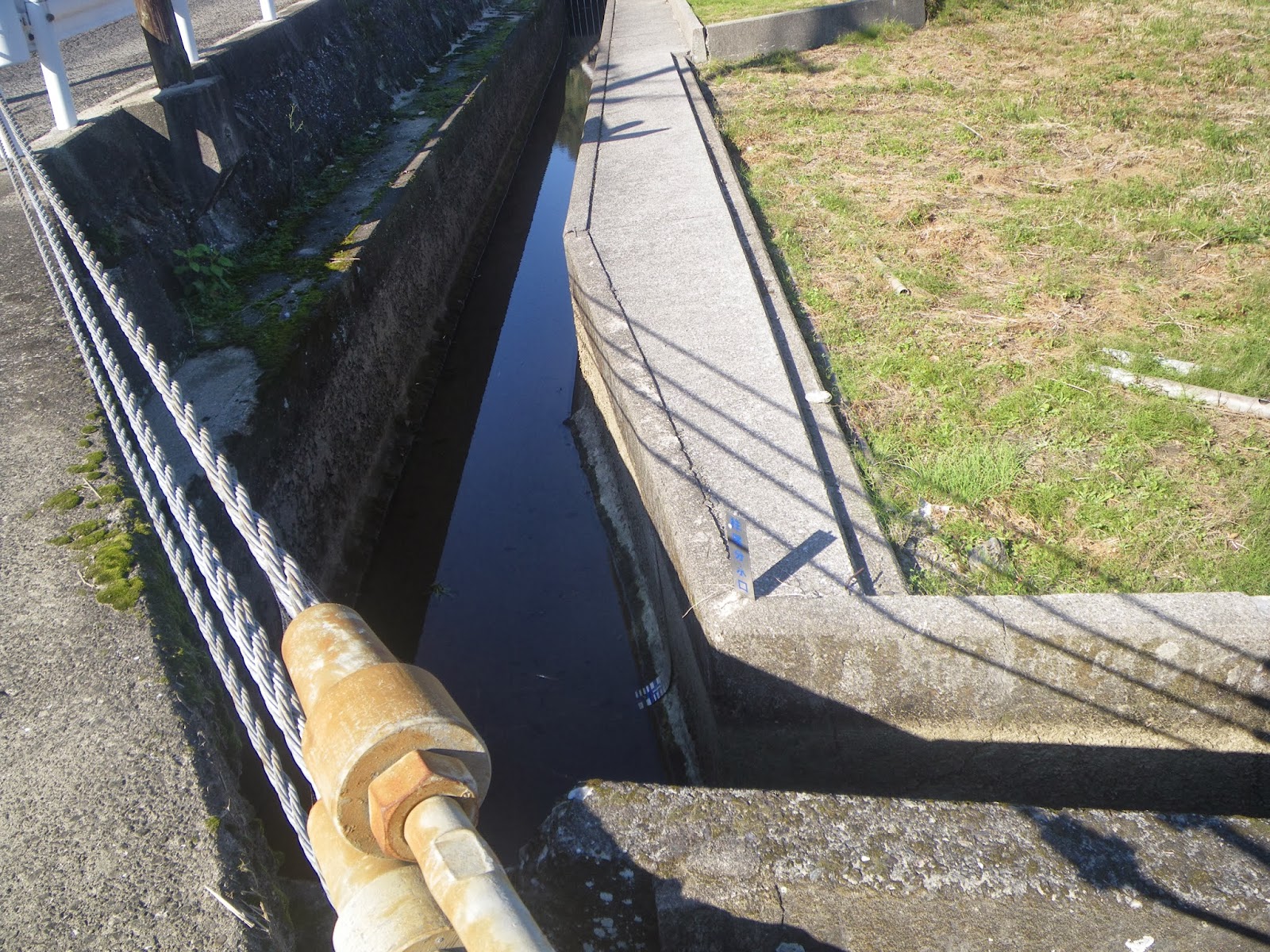 メモに際し、あれこれ調べると、「法皇山脈をくりぬいた全長二七八三mの第二隧道を通って上柏の馬瀬谷上の調圧水槽に達する。標高二九三mの調圧水槽からは、土居町方面へ伸びる延長約一三・五㎞の西部幹線水路と川之江市方面へ伸びる延長約五㎞の東部幹線水路に分水され、その受益面積は一二四六haで六五〇万立方mに達している」という説明があった。が、いまひとつ場所やそこから今立っているところまでの経路、東西の幹線水路への分水工よくわからない。