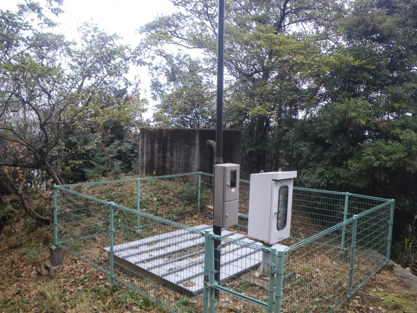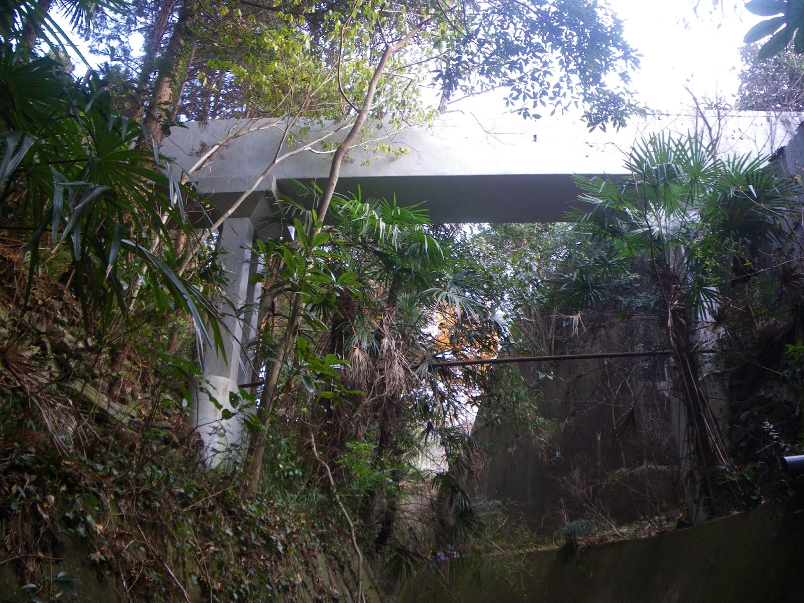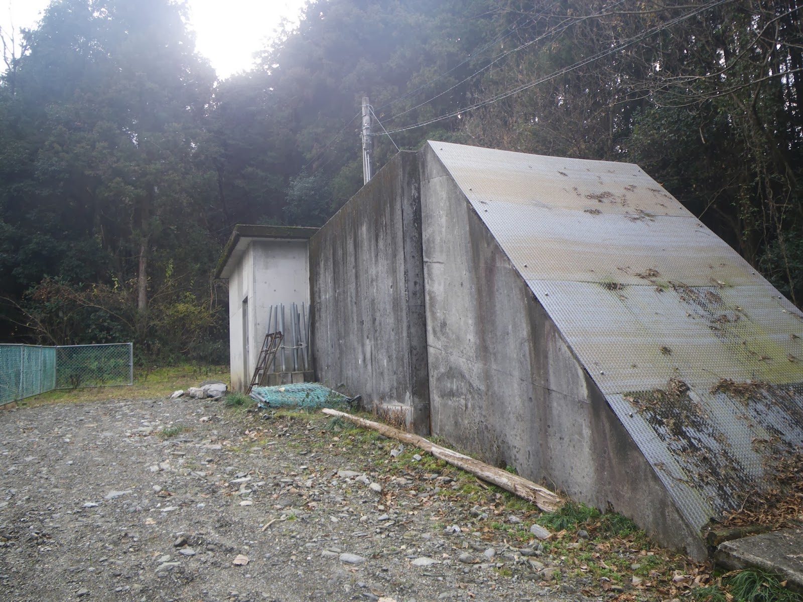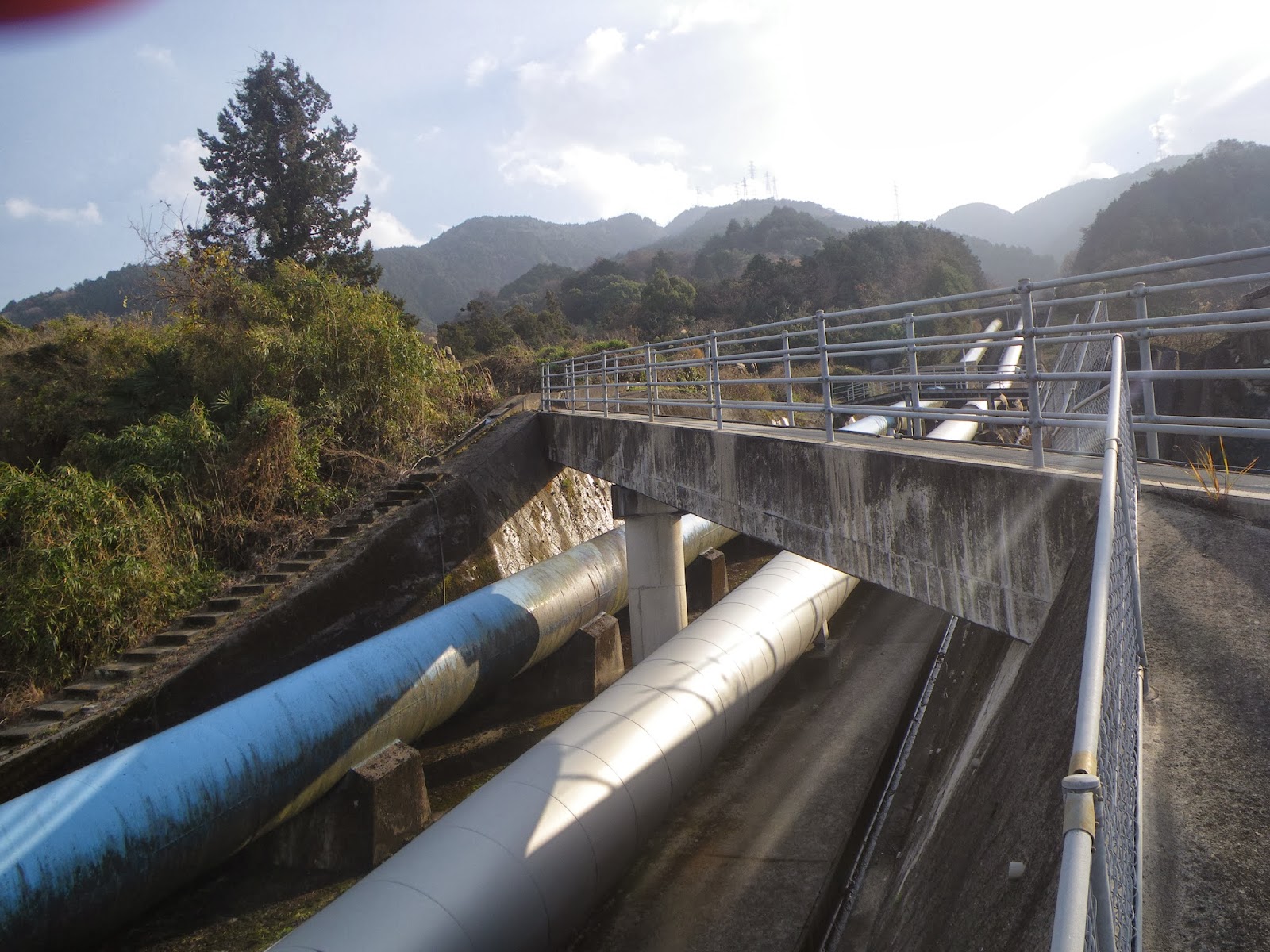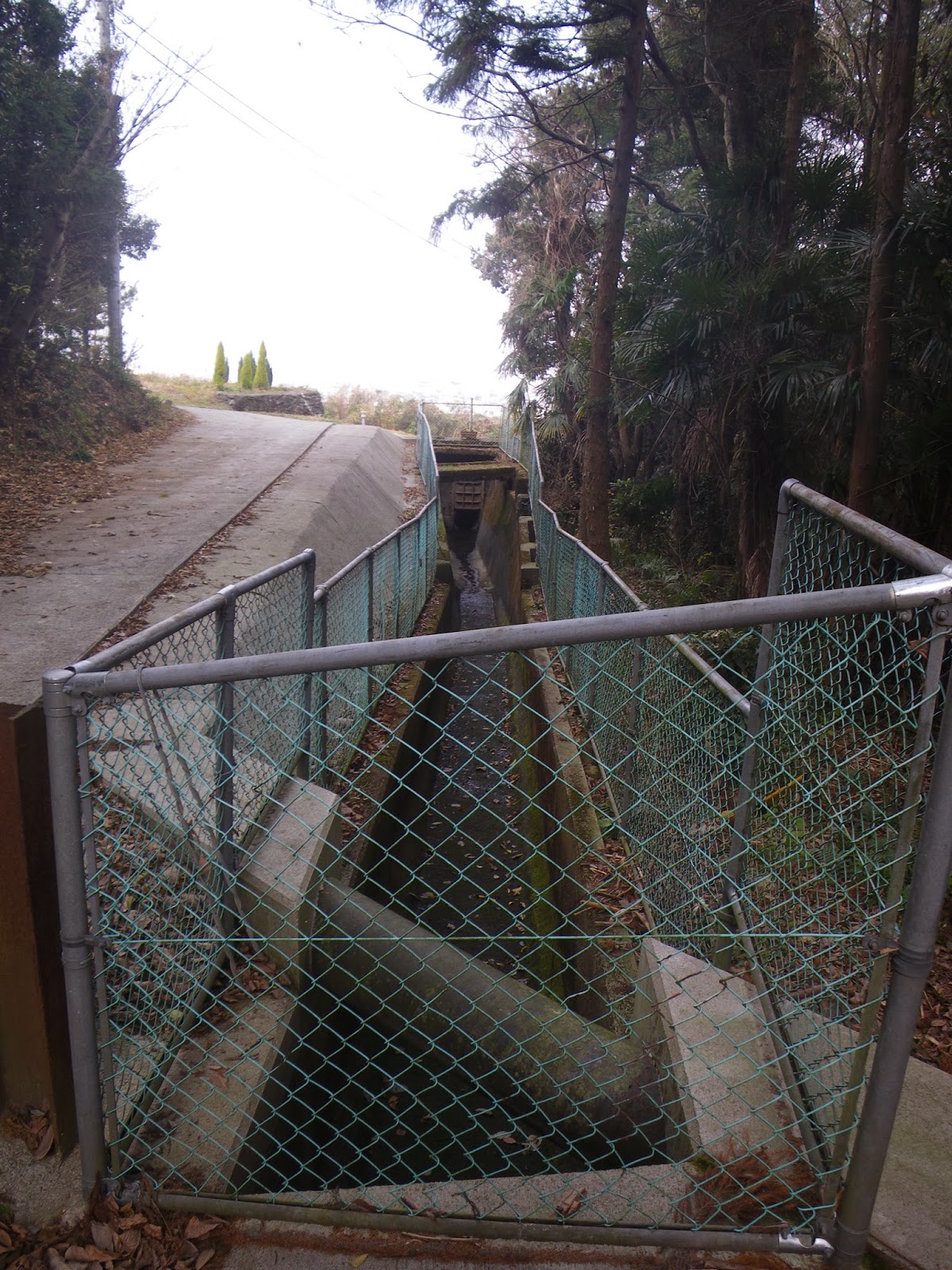疏水施設から先に進む。ゆっくりとカーブする道を下ってゆくと2番目の施設。コンクリート造りの構造物にはメーター類などもなくシンプル。道はこの施設から左に折れ、急な階段となって下に向かう。