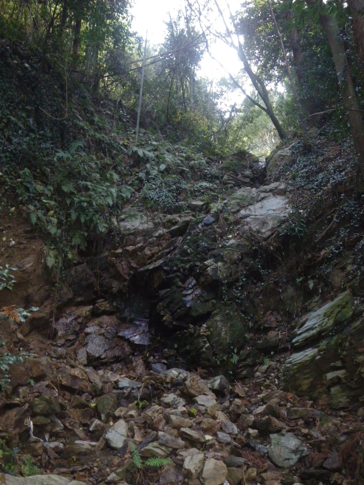地図を見ると階段下の方向には沢が切れ込んでいる。疏水水路はここで方向を変え、沢筋の上部に向かて下って行くのだろう。