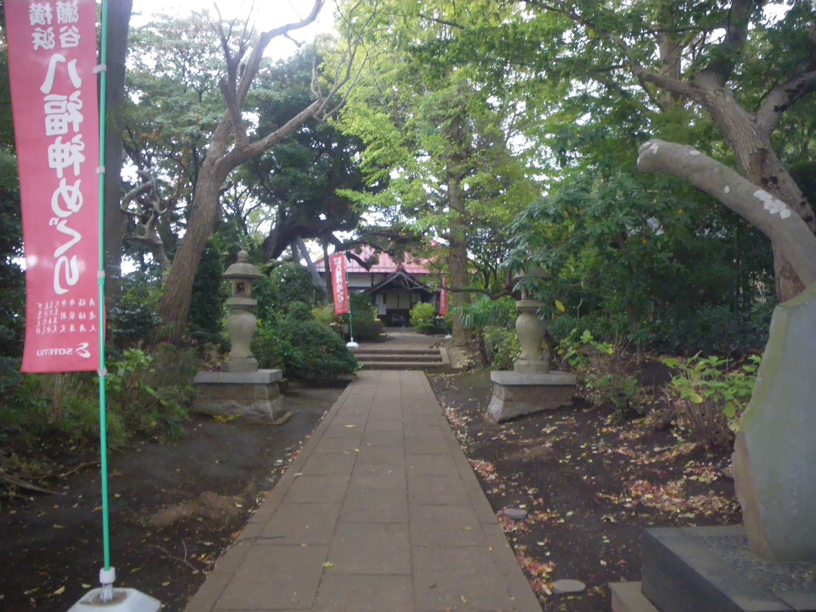 高い杉に覆われた道を進み、宅地として開かれた辺りまで進むも、鬱蒼とした杉の建ち並ぶ小径ではあるけれど、書籍で見た坂の姿はなく、坂の上り口まで戻る。思うに、キャプションにあった写真は、御手洗乃池へと下る坂道ではなかろう、か。『関東周辺 街道・古道を歩く』には場所もそのように記している。場所は違ったにしても、民家のすぐ隣りに「森に迷い込んだような錯覚に」といった森があったわけで、森の散歩は十分楽しめる。