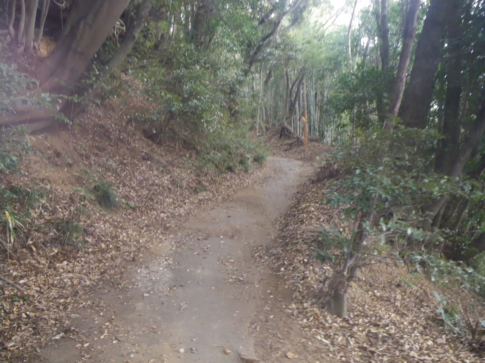 三叉路を左に折れると森が一瞬切れ、左手に畑地などが見える。先を進み、再び森に入る手前に左に上る緩やかな坂があり、『関東周辺 街道・古道を歩く』には「牛めの坂」とあったがここには「牛女坂」と表示されていた。坂の左手は十分に開けており、「牛めの坂」についていたキャプション「森に迷い込んだような錯覚に」にはほど遠い。先に進めばキャプションのような坂があるのかと、ゆるやかな坂をのぼり先に進む。