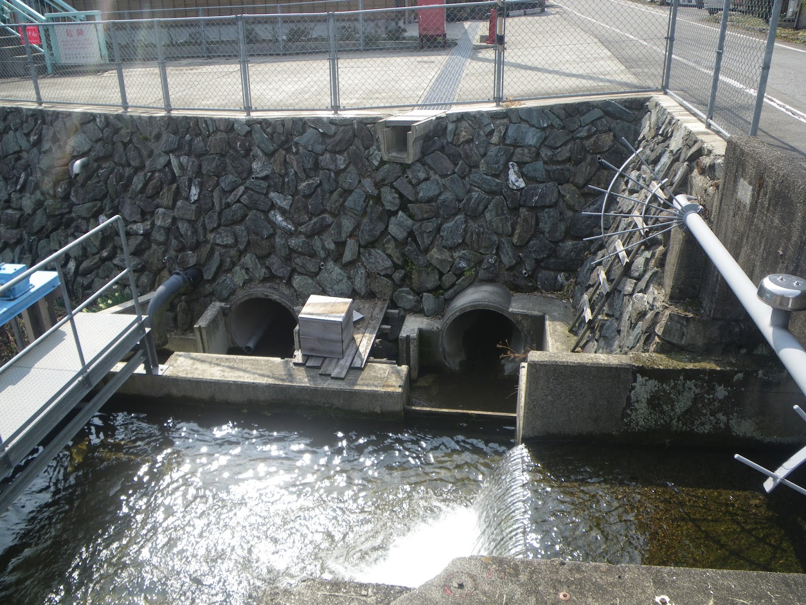 国道を西に進み、「庄屋井手」のあった先に「逆調整池」への案内。案内に従い道を下ると水を称えた堰堤があった。既にメモしてはあるが、「西条 水の歴史館」に「道前道後平野は瀬戸内海に面し雨量の少ない地方にあるため河川の流量が少なく、たびたび干魃の被害を受けてきました。このため、昭和32年から10年かけて面河ダムや道前道後平野に水を送る施設を国(農林水産省)がつくりました。面河ダムに貯留された水は隧道を通り中山川の逆調整池まで流下し、逆調整池で道前平野側と道後平野側に分水される。道前平野側では逆調整池で放水され、中山川を流下した面河ダム用水を、中山川取水堰から取り入れた後、両岸分水工で右岸幹線水路と、左岸幹線水路に分水しています。逆調整池で放水され、中山川を流下した面河ダム用水を、中山川取水堰から取り入れた後、両岸分水工で右岸幹線水路と、左岸幹線水路に分水しています。