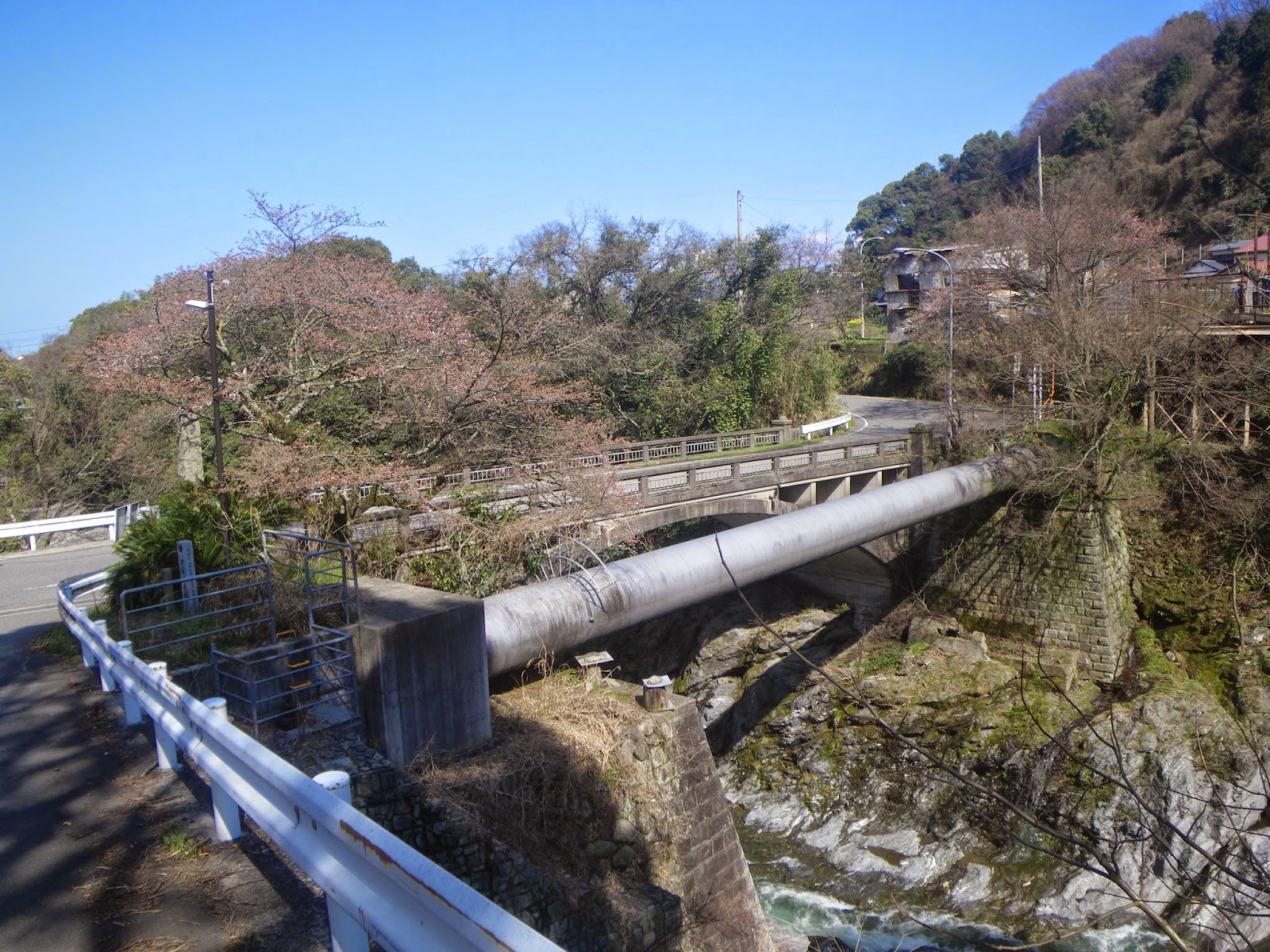 道を進みカーブを曲がり道脇に水路などないものかと注意しながら進むが、それらしきものは見当たらない。仕方なく沢を目安に進む。最初の沢は小さく、そこにかかる橋も小さい。次いで現れた沢は、架かる橋も結構大きく。そこかと思うがその沢には人工的な水路らしきものは見えない。