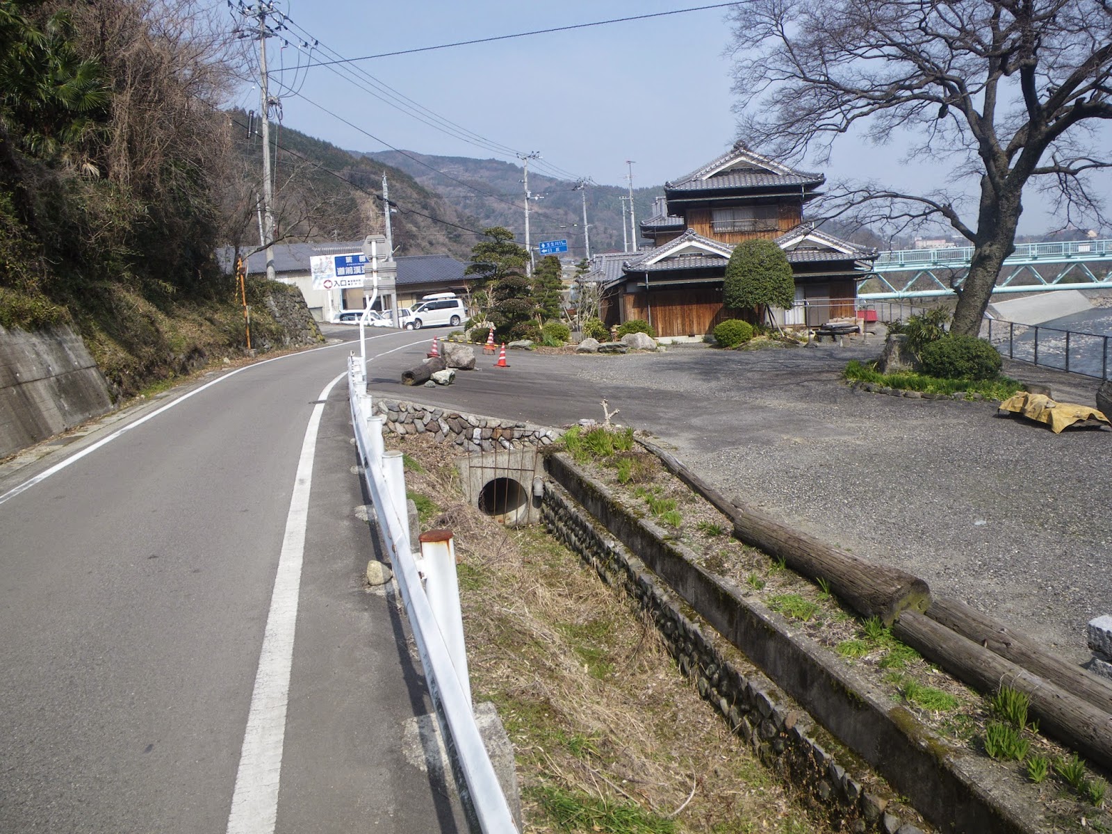 集落とはいいながら、国道脇には「名所 桜三里」との看板はあるものの開いている気配の感じられない食堂など数件が見えるだけである。中山川を隔て急峻な千羽ヶ岳が美しい。