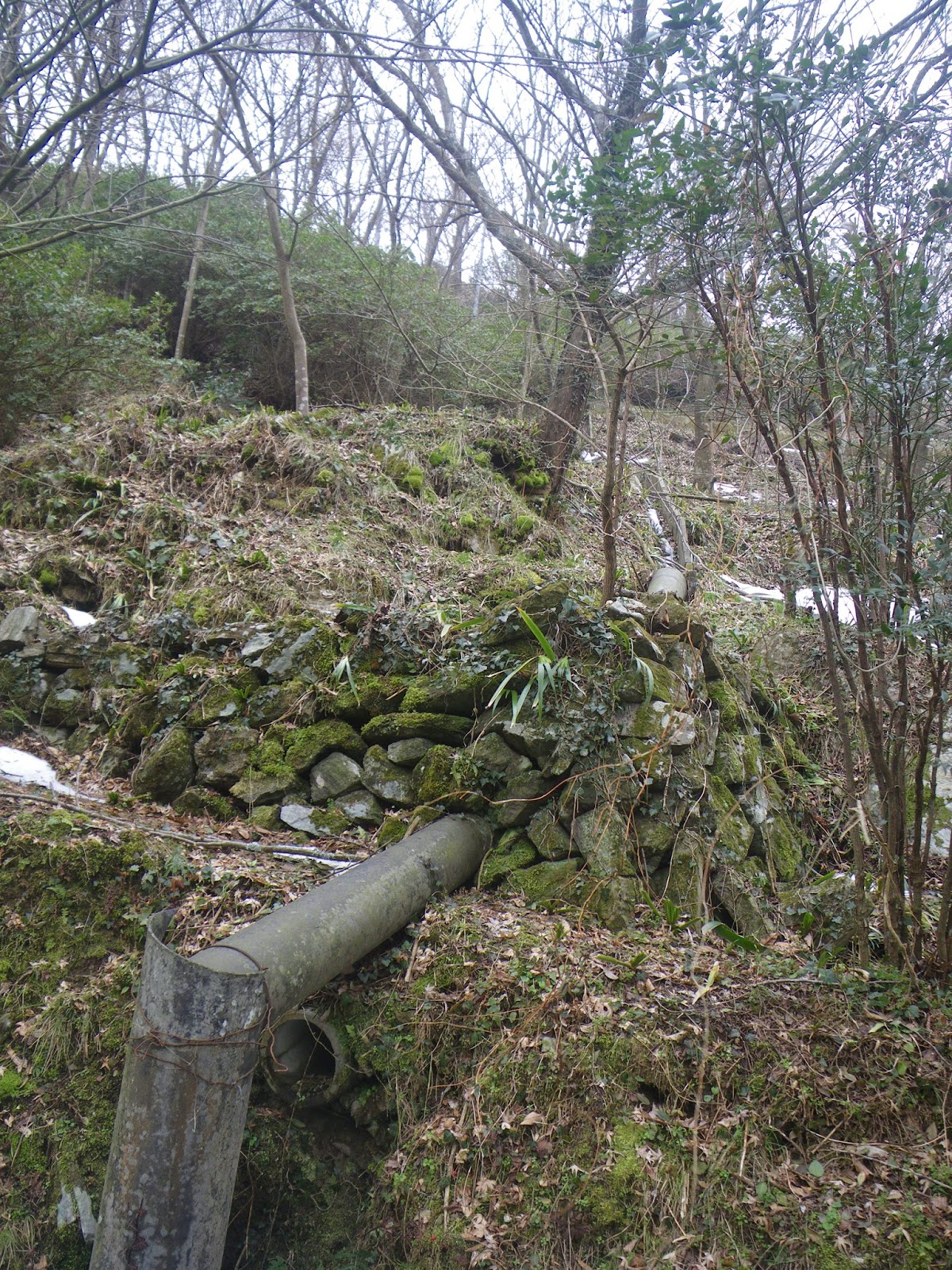 石組の隧道入口をしばし眺め、故なき達成感に一人悦にいる。しばし休憩し、隧道入口辺りから崖を這い上がる。結構急な崖ではあったが、上りきった辺りは隧道出口探しでイメージできるので怖くはない。