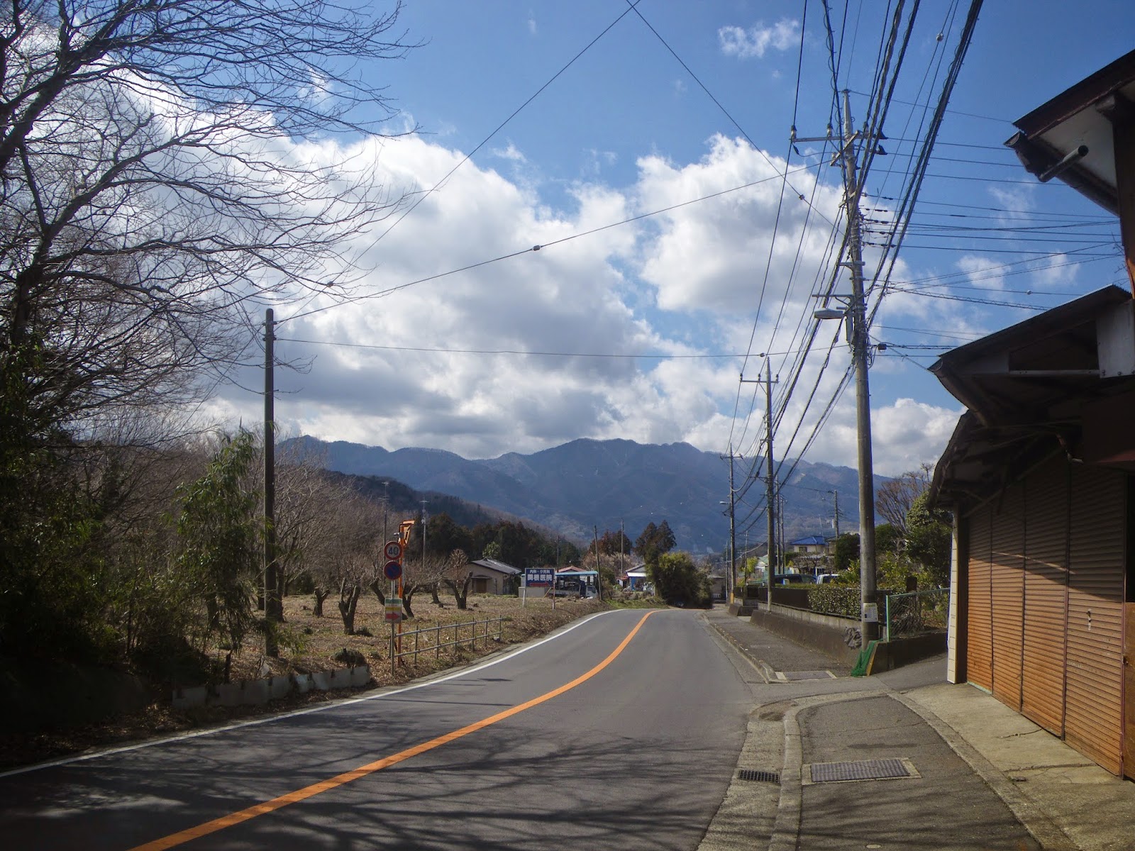 地図で確認すると角田八幡神社方向に少し戻らなければ、台地上の段丘面へと上る道はないようである。少し道を戻り、成り行きで道を進み段丘面に。ルートは出来る限り崖線に沿って進むことにする。ついでのことでもあるので、中津川を越えた対岸の「屋形山」の崩れ具合を見ることができるかな、といった想いではある。