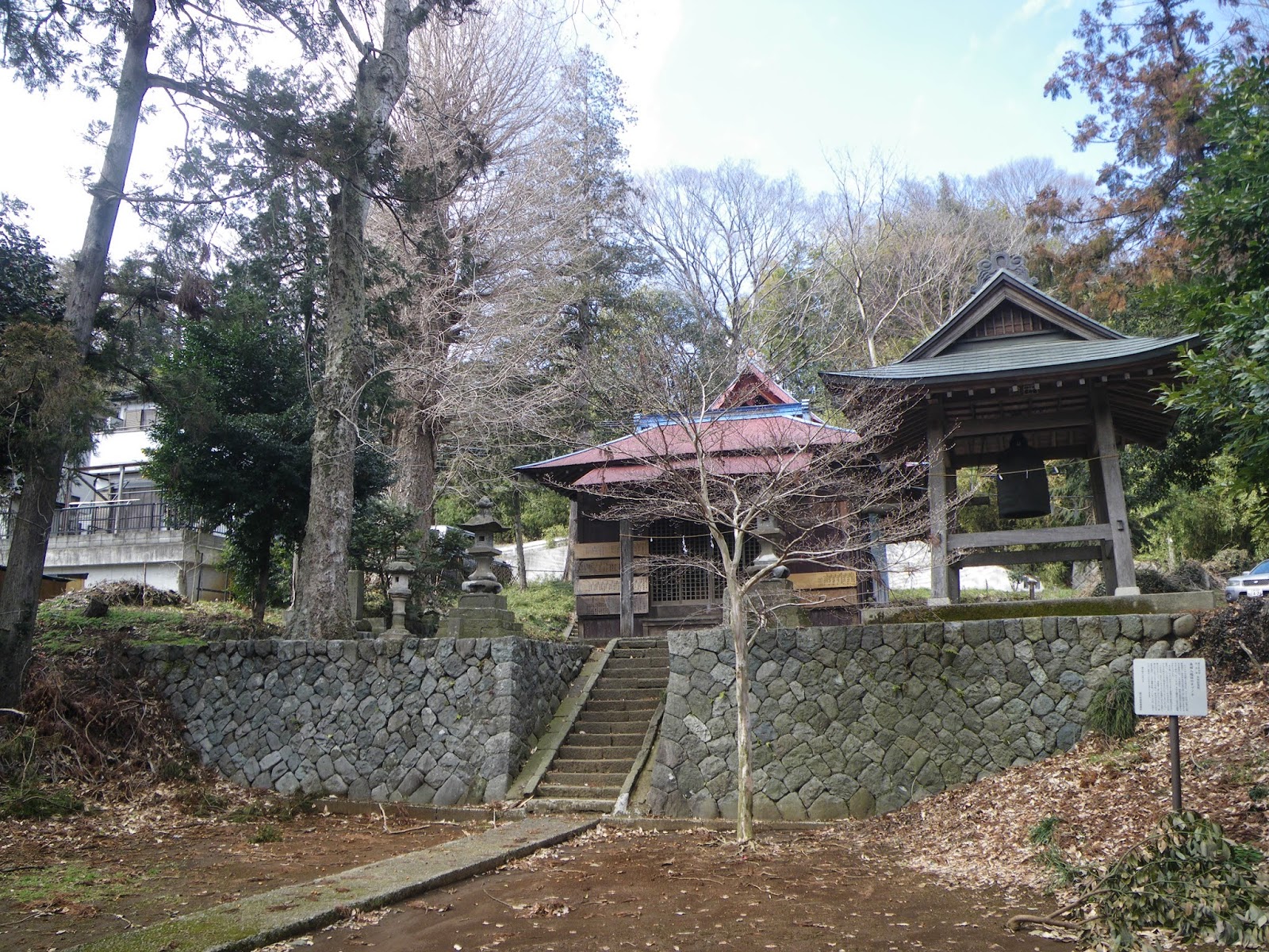 社殿にお参り。社の祭神は誉田別命 ( ほむたわけのみこと )。15代応神天皇のことである。天保12年(1841年)完成の『新編相模国風土記稿』によると角田村の鎮守で、神体は銅像および円石で、天正19年(1591年)に社領二石の御朱印を賜ったとのこと。東照宮が境内摂社にあったが、御朱印と関係あるのだろう、か。