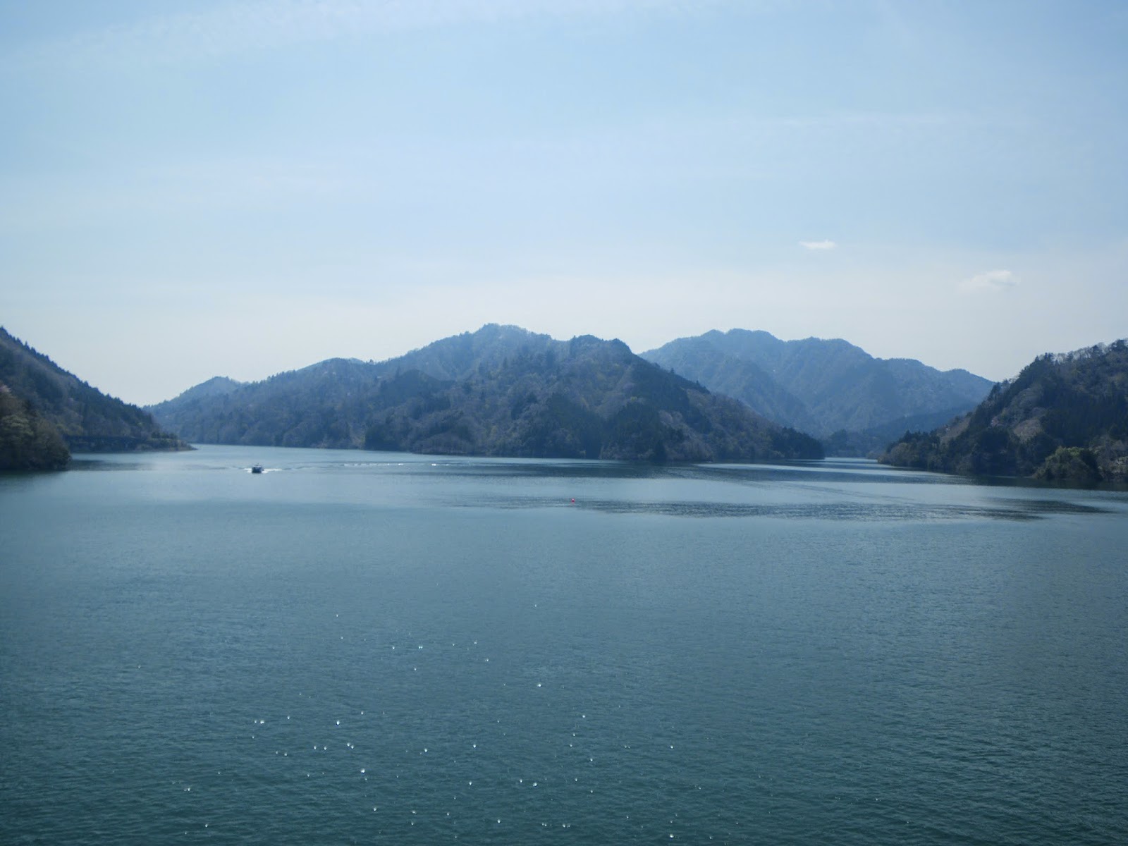 昔の川筋は湖底に沈み見ることはできないが、おおよその流路は「やまびこ大橋」の下を通り、北西へと進み、やまびこ大橋の北の宮ヶ瀬湖の中央部分で南下してきた早戸川と合流し、合流点でその進路を東へと大きく変え、宮ヶ瀬ダム方向へと向かってゆく。ダムの底に沈んだ中津川や、中津川に合流した早戸川、そして宮ヶ瀬村の姿を「ふるさと宮ヶ瀬;ふるさと宮ヶ瀬を語り継ぐ会(夢工房)」をもとに以下メモする。現在芦ノ湖ほどの広さをもつ宮が瀬湖であるが、昭和41年(1966)、県営事業として中津川水系の利水開発、所謂「三点ダム構想」が発表されたときは、中津川(宮ヶ瀬字一之瀬;唐沢川との合流点の下流)、早戸川(宮ヶ瀬字落合上流)をロックフィルダムで堰止めて調整、自然流水を石小屋から津久井湖に導水し、既存の県営利水設備に機能させ水需要に対応しようというものであった。しかし3年かけて準備してきたこの計画は昭和44年(1069)、建設省によって発表された巨大ダム構想に取って代わられる。その結果、県営事業では想定していなかった宮ヶ瀬村が湖底に沈むことになった。