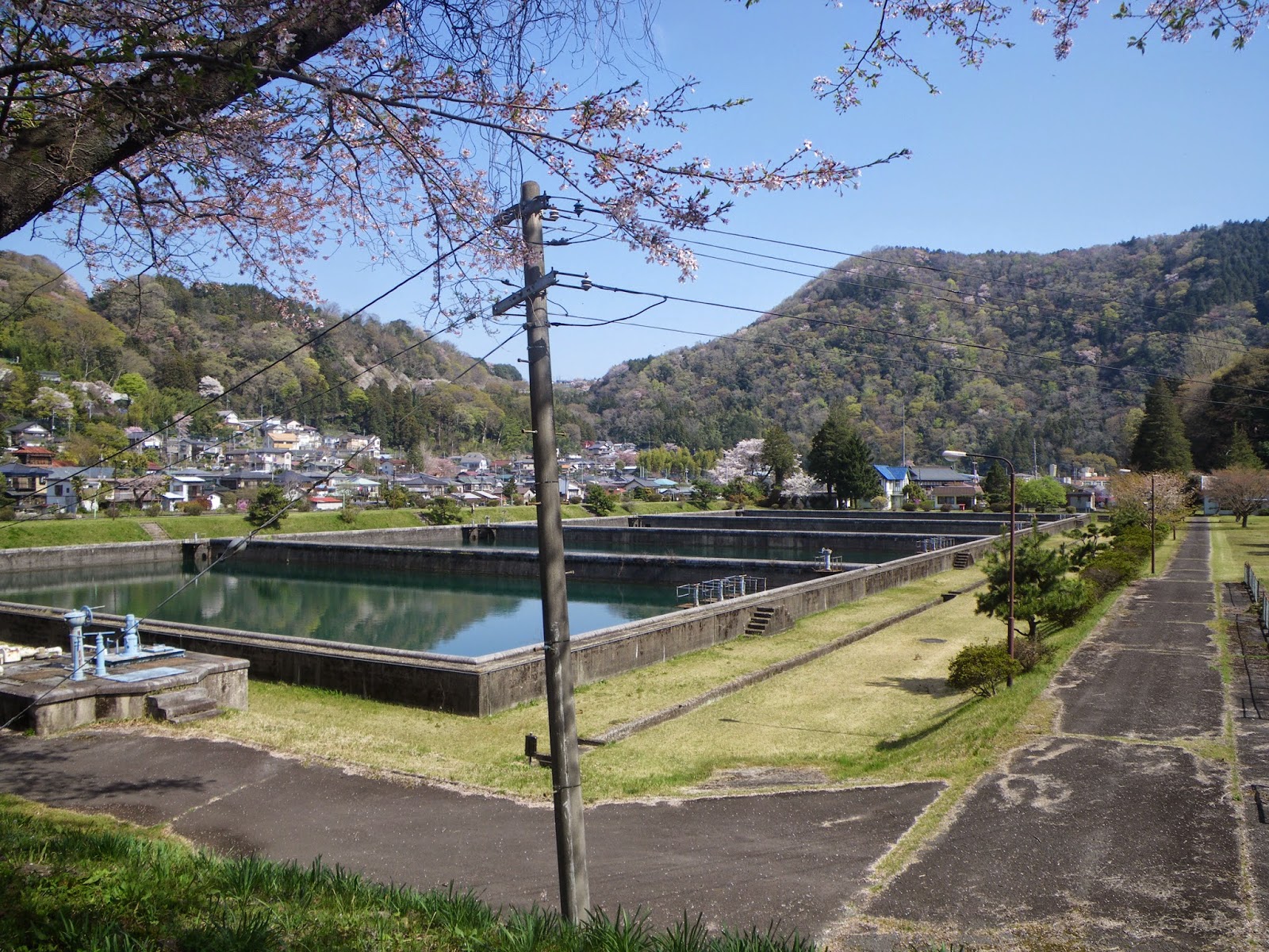 柵で囲まれた水源地の中には幾つかの沈殿池があり、この水源地の上流500mほどのところにある取水口から取り入れ沈殿池の砂利などで濾過した後、およそ53キロ離れた横須賀の逸見浄水場に自然流下で送られていたようだが、平成19年(2007年)4月より送水は休止中とのことである。