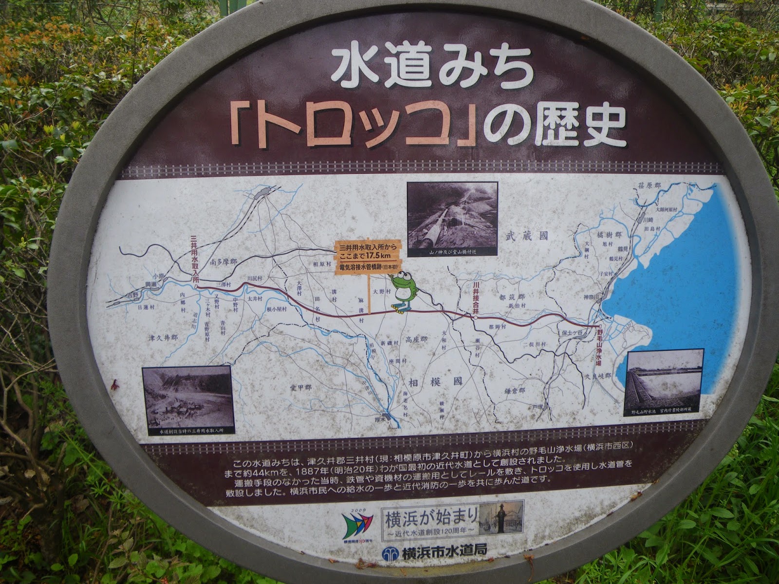 本日のルート;橋本駅>大島地区>田名地区>山王坂>滝の渡し跡>小沢頭首工>水郷田名>烏山用水>田名八幡宮>(久所地区)>高田橋>相模原幹線水路(大堀)>坂の窟>ひの坂>望地隧道>弁天どぶ>万平穴>望地弁財天>清水下頭首工完成記念碑>南光寺>道祖神>陽原バス停>望地>徳本念仏碑>塩田さくら橋>天満宮>八瀬川>上溝バイパス>土地改良記念碑>無量光寺>相模線・原当麻駅
