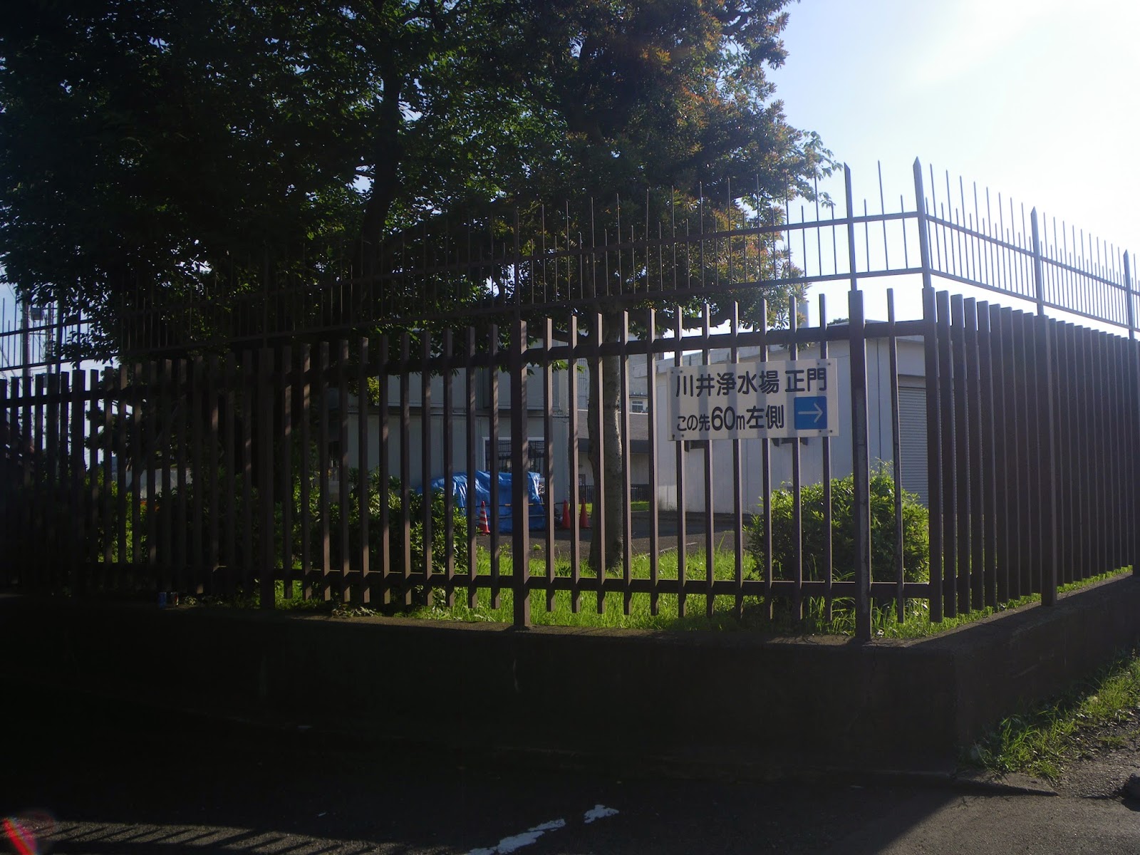 道を戻り川井浄水場のゲートに。ここから先は先日のメモのコピー;川井浄水場は現在工事中。従来、川井浄水場から道志川系の原水を西谷浄水場に導水管により送水していたが、将来構想として、道志川系の原水は川井浄水場に、相模湖系の原水は西谷浄水場で処理されることになるようだ。その計画に関連した工事であろうか。