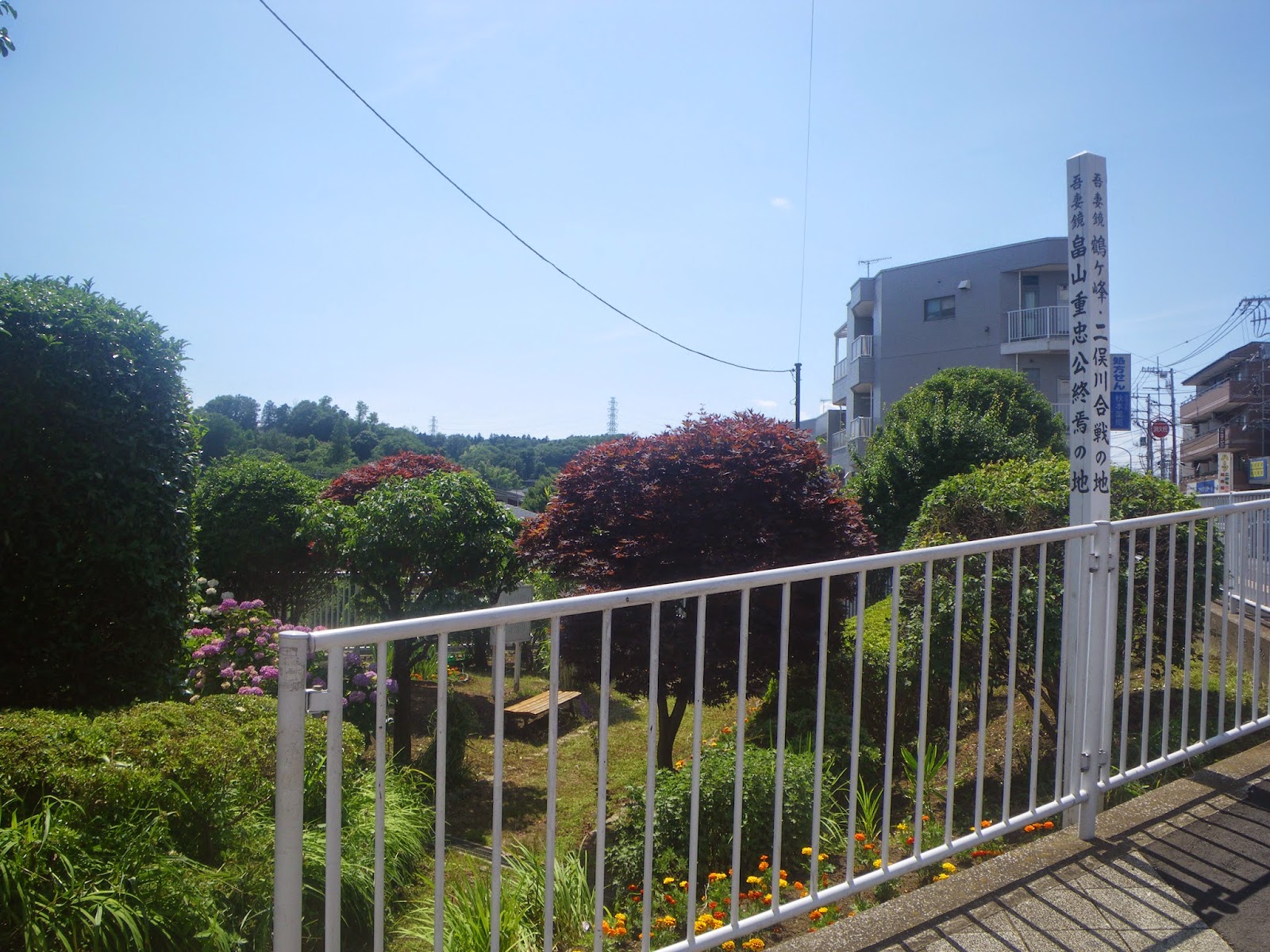 鶴ヶ峰は鎌倉時代の歴史書である『吾妻鏡』に「鶴峯」と記される地。「重忠去る十九日小衾郡菅谷の館を出て、今この駅 に着くなり。折節舎弟長野の三郎重清信濃の国に在り。同弟六郎重宗奥州に在り。然る間相従うの輩、二男小次郎重秀・郎従本田の次郎近常・榛澤の六郎成清已下百三十 四騎、鶴峯の麓に陣す」とある。軍勢の大半が他の地に出陣の中、重忠公は僅かな手勢を率い菅谷の館(埼玉県嵐山町)を出立し、この地に陣を張った、ということである。駅を少し西に進み、帷子川と二俣川が合わさるあたりが「二俣川合戦の地」であり、上の吾妻鏡にある鎌倉武士の鑑、畠山重忠公が僅かの軍兵で、北條勢の大軍と戦って敗れた地として知られる。