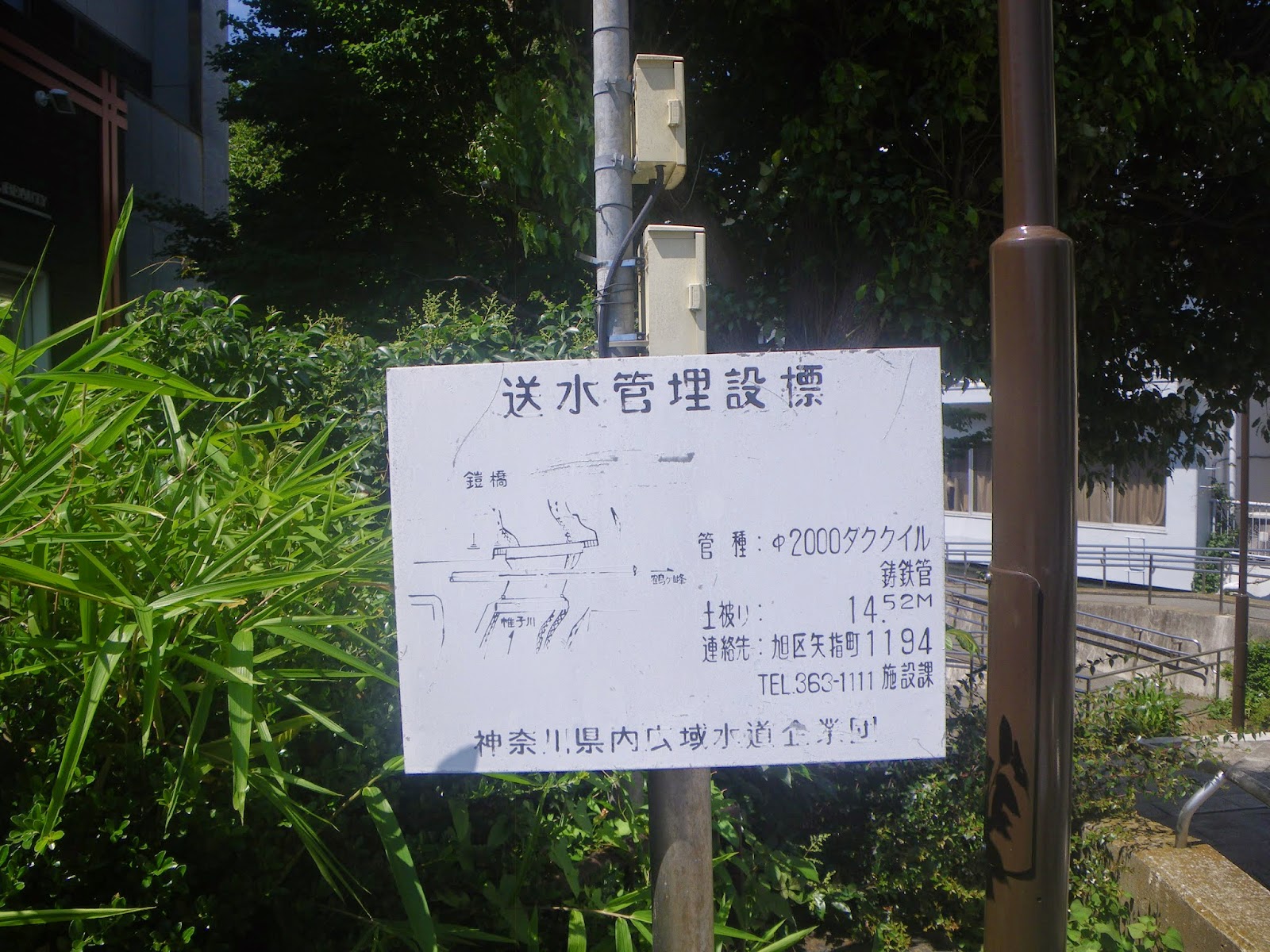 また、上メモしたように、この構想にともない、従来相模湖系の原水を処理していた鶴ヶ峰浄水場は鶴ヶ峰配水池(仮称)を残して廃止することになり、今後川井浄水場で処理した水を鶴ヶ峰配水池へ送水するための送水管更新工事が行われるようである。その送水管更新工事のルートは今回歩いた鶴ヶ峰ルートではなく、帷子川に沿って進む、所謂、横浜水道道のルートである。この鶴ヶ峰ルートの将来がどうなるのか、これも上で、メモしたように門外漢故に不明である。
