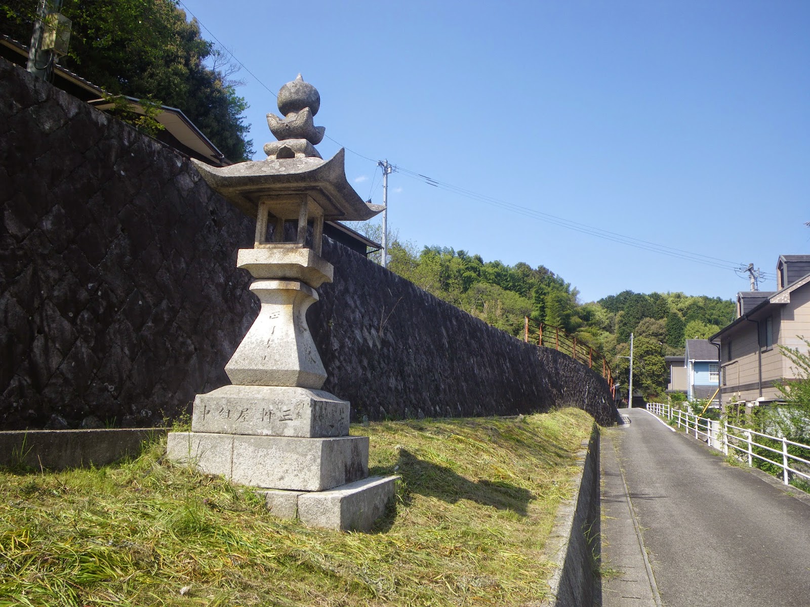 川上の集落を進み、少々荒れた中山寺を見遣りながら金比羅道を進む。一車線程度の小径をしばらく進むと大きな道路に出る。北東に横灘団地という開発宅地があるが、そこへのアプローチとして大きな道が造られたのだろうか。