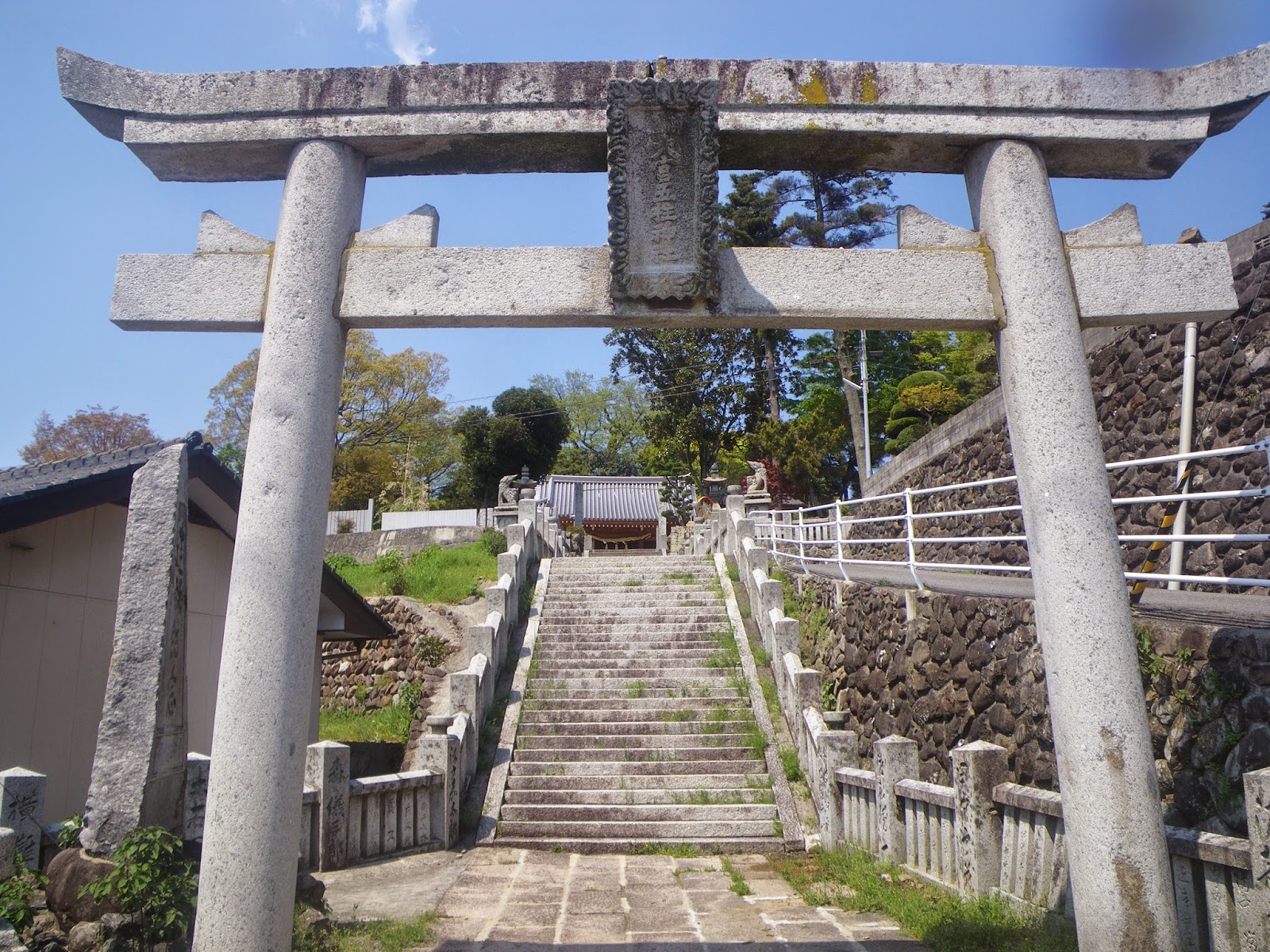 愛媛県神社庁のHP資料に拠れば、「主祭神は伊弉冊尊(いざなみのみこと)、稚産霊命(わかむすびのみこと)、瓊々杵尊(ににぎのみこと)、猿田彦命(さるたびこのみこと)、宇迦廼御魂神(うかのみたまのかみ)。境内には三島神社(大山積神)、荒神社(大物主命)、秋葉神社(弥都波能売神、外一柱)、和霊神社(山家公)、戎子神社(事代主命)、八幡神社(応神天皇)、床浦神社(田心姫命、外二柱)、天満宮(菅原道真公)、鎮守社(埴安姫命)、大塚神社(荏原経高)が合祀される。