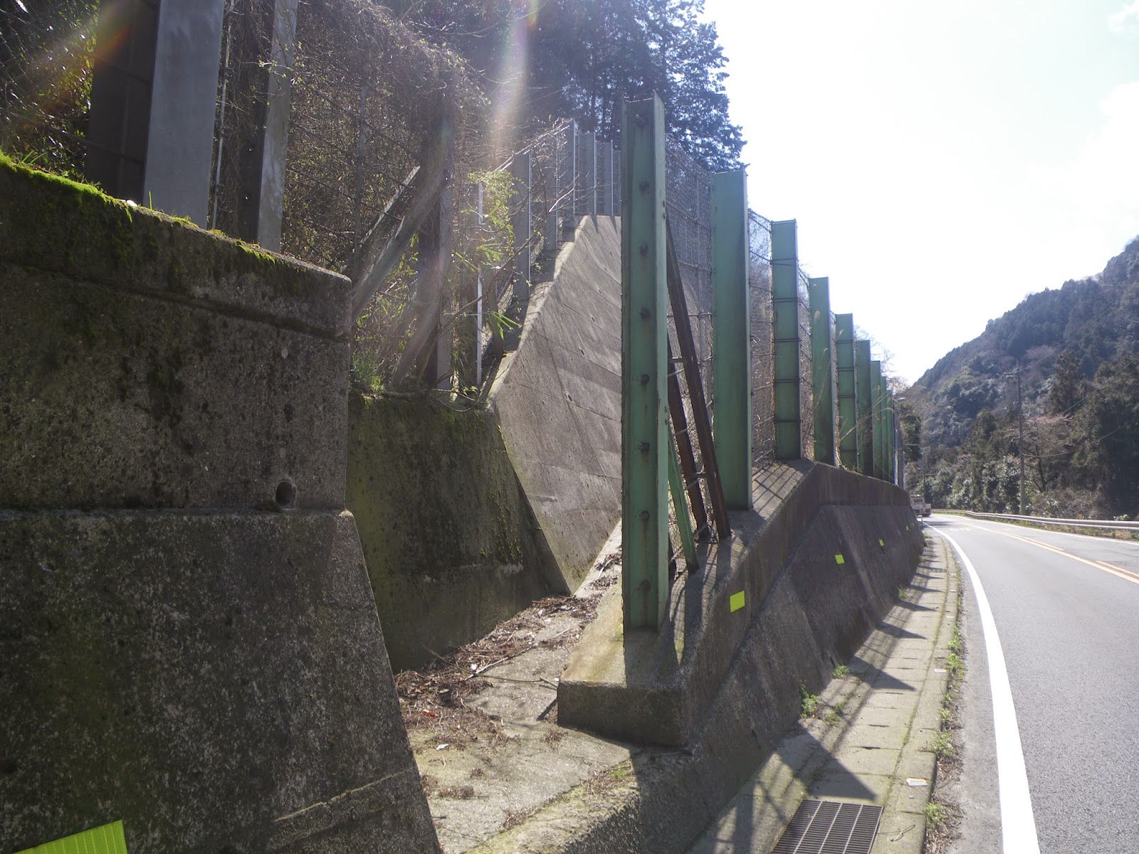 が、国道から五大明神までの道筋ははっきりしない。ということで、国道を少し東に向かった辺りにある、落石防止・土砂崩れ防止のコンクリートの遮蔽物と山肌の間にある隙間を抜けて千原の集落へと向かう。