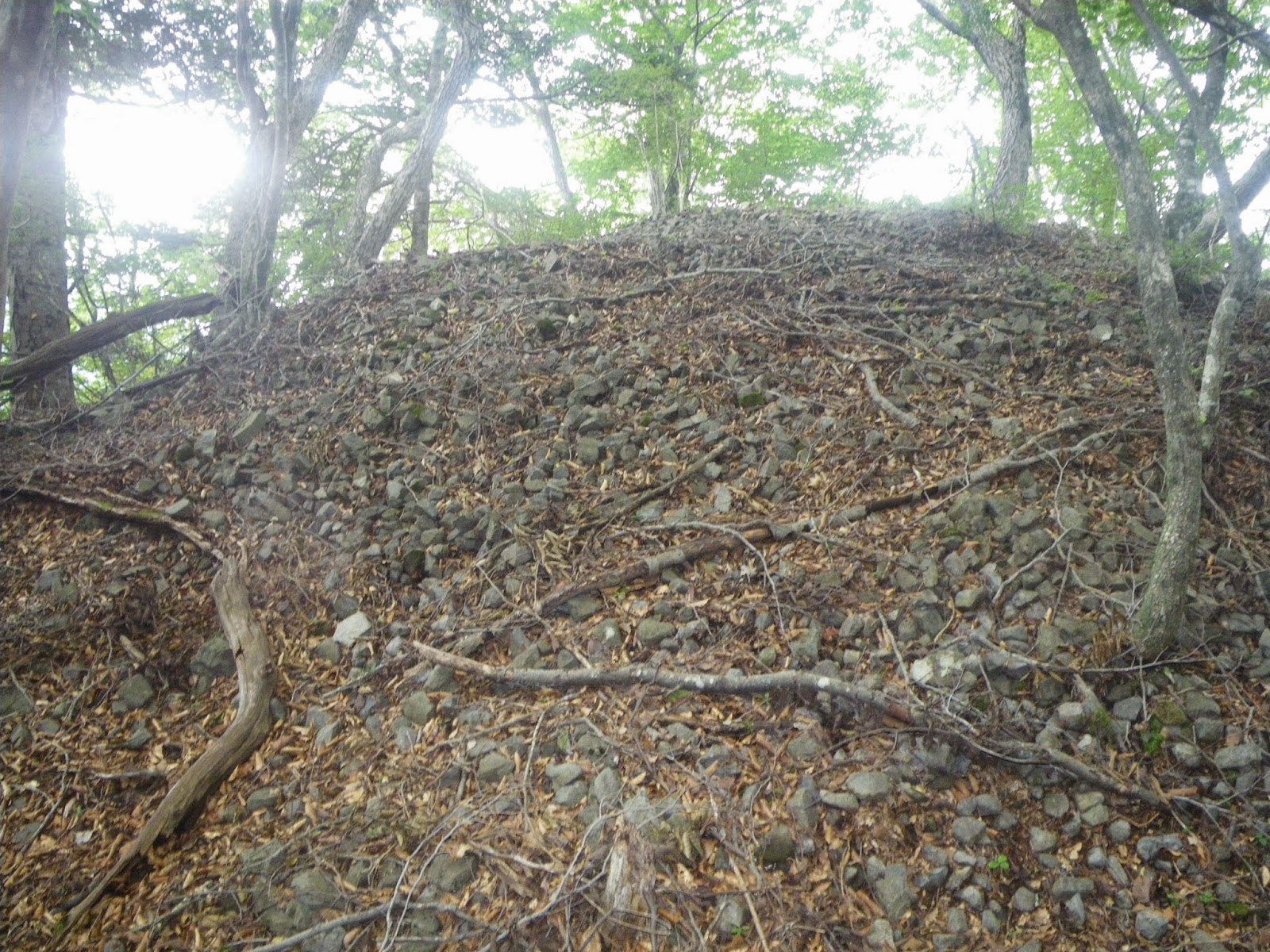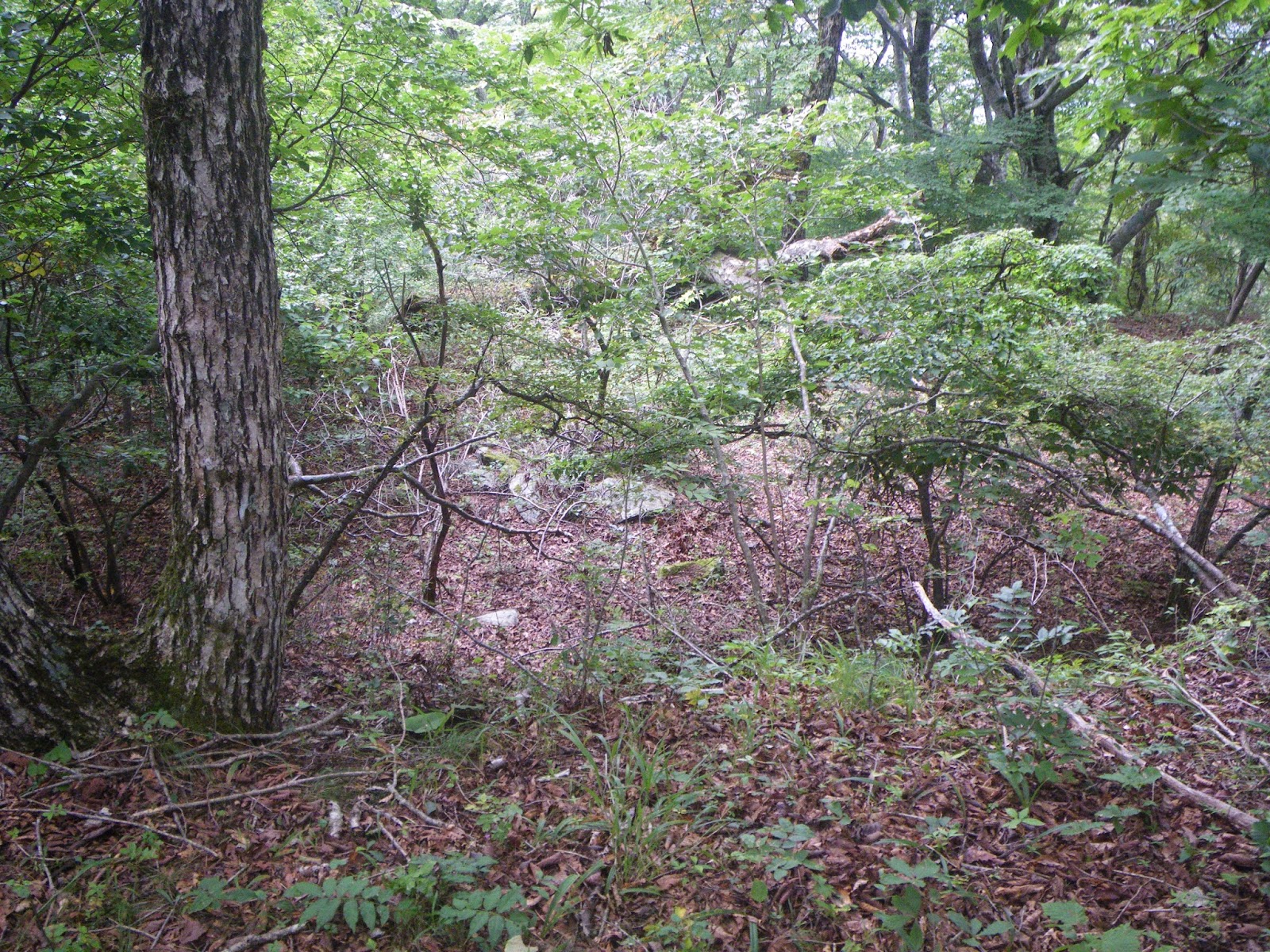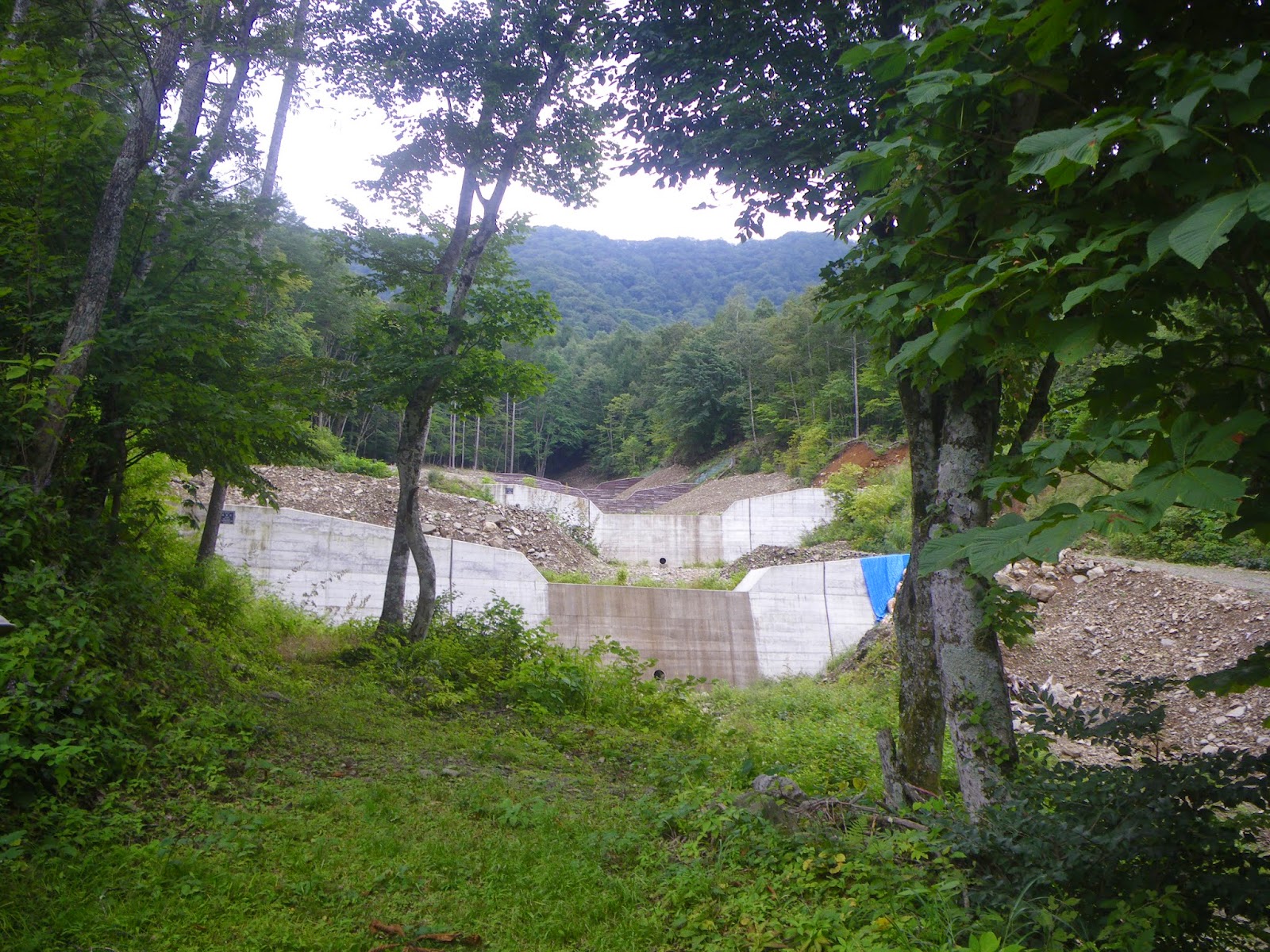 それはともあれ、この水圧鉄管は比高差600mの山腹、石ヶ山丈にある導水路の水を溜める「沈砂池」まで続く。その「沈砂池」が本日の導水路散歩の目的地ではある。弟はこの水圧鉄管を藪漕ぎしながら沈砂池まで上り切ったとのことである。