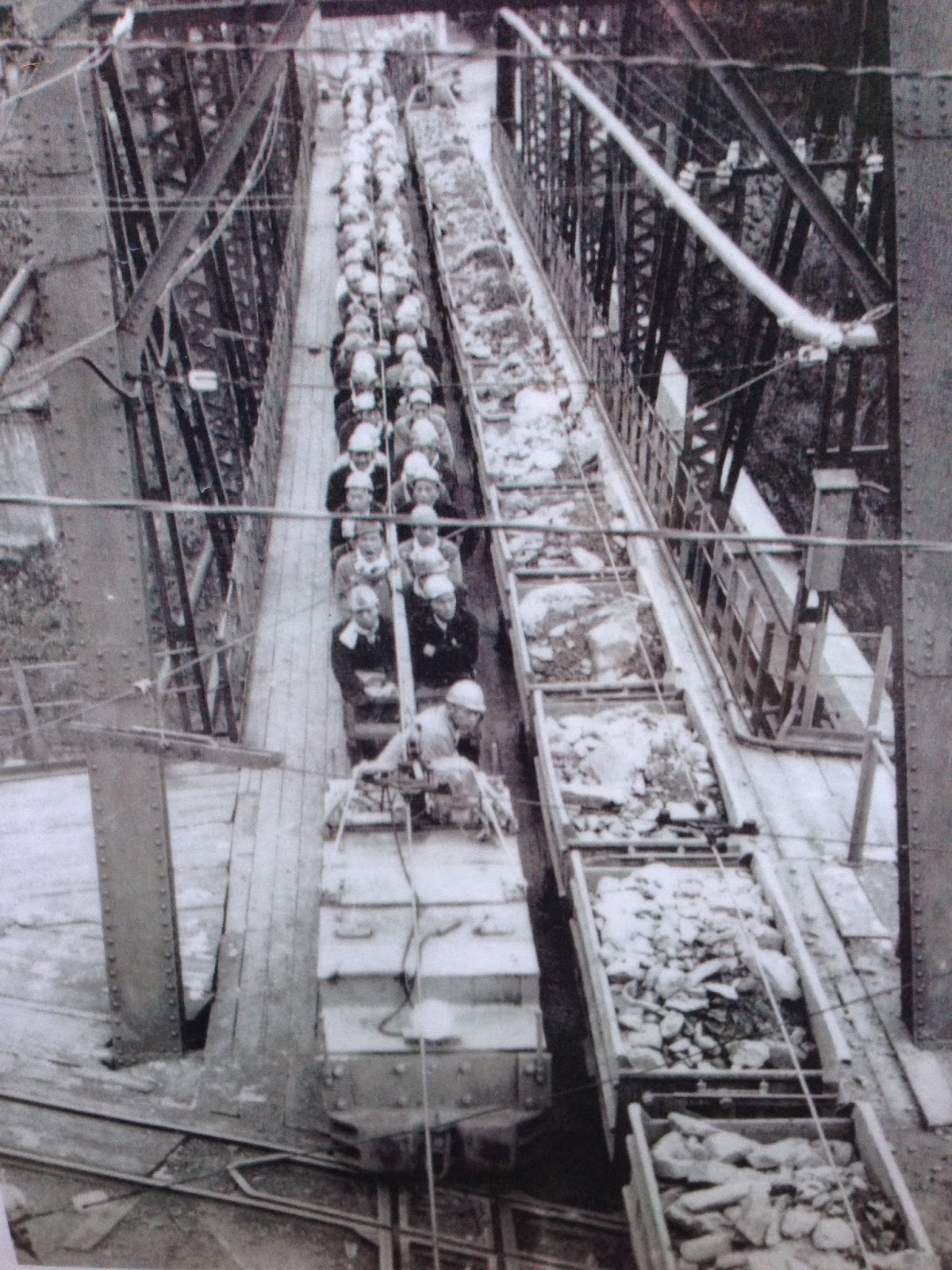 大正5年(1916)頃に設置され、端出場から索道を使って送られてきた生活物資を生協や社宅に荷揚げするために利用される一方で、第三通洞を利用して別子山地区から運ばれた木材を降ろすためにも利用されており、生活面だけでなく銅山の作業面でも重要な施設でした。原則として人が乗ることは禁止されており、生協などに直接人の手で荷物を運ばなければならないときだけ乗ることが許されていたそうです。