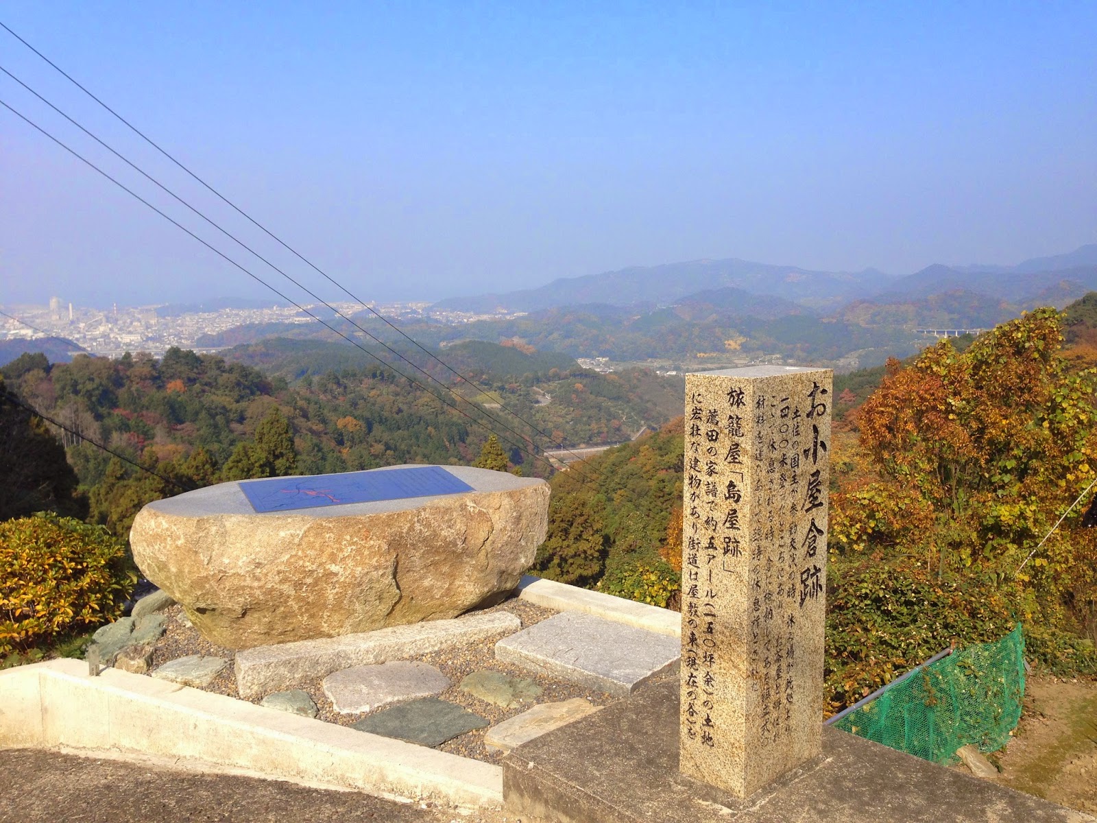 平成8年、文化庁より横峰越えが「歴史の道百選」に選出された事を機にこの歌碑を建立することとなった」とあった。 昔は見晴らしもよかったのだろうが、現在は植林だろう木々に遮られ瀬戸の海を見渡すことはできないが、昔は夕日に染まる美しい瀬戸の島々が見えたのだろう。