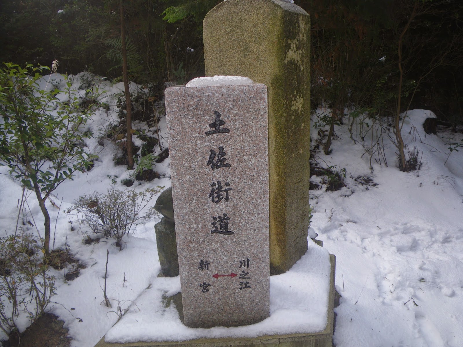因みに、雪景色の写真はデジカメの調子が悪くピンぼけばかりであったので、年末帰省の折に撮り直しで、同じコースを辿ったときのもの。新雪に鹿の足跡らしき踏み跡だけが残る土佐街道を歩くのも結構良かった。