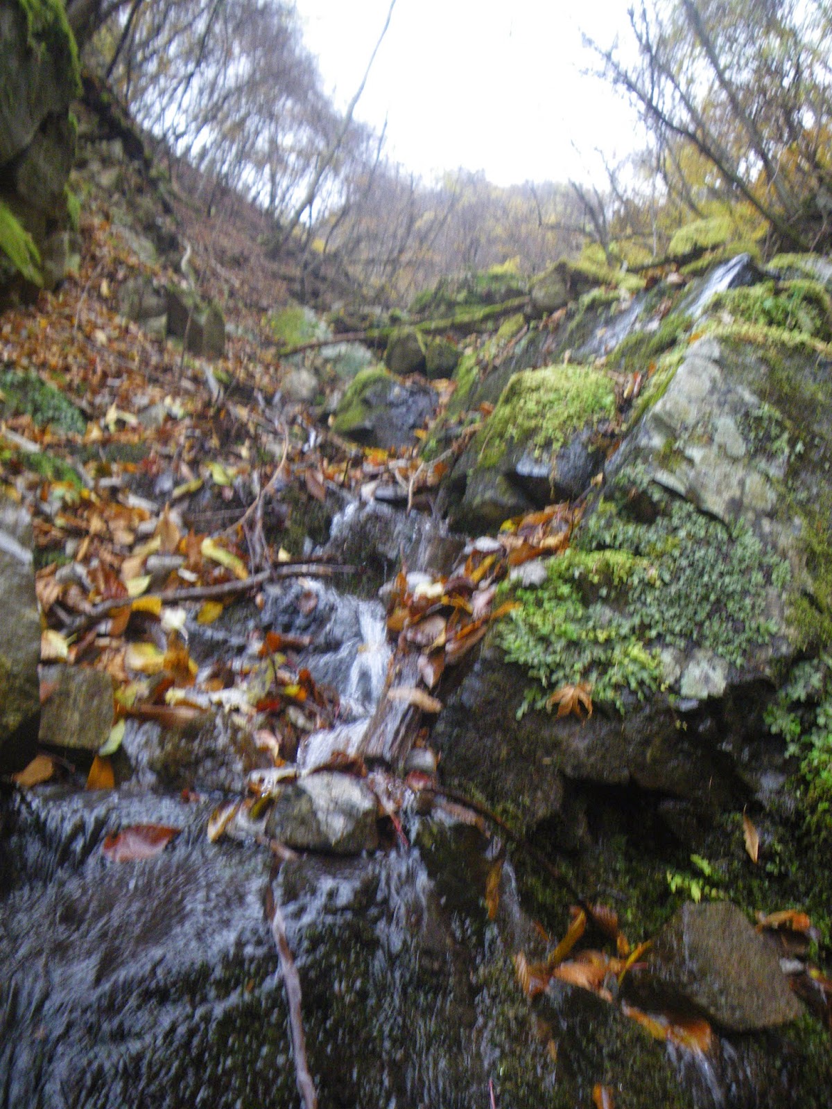 先に進むと沢に出る。柳沢川(丹波川の上流域の川筋)に突き出たこの突起部の西側辺りに下っているようである。清冽な水で崩壊箇所を渡るときに汚れた手、そして顔を洗い、気分爽快に。