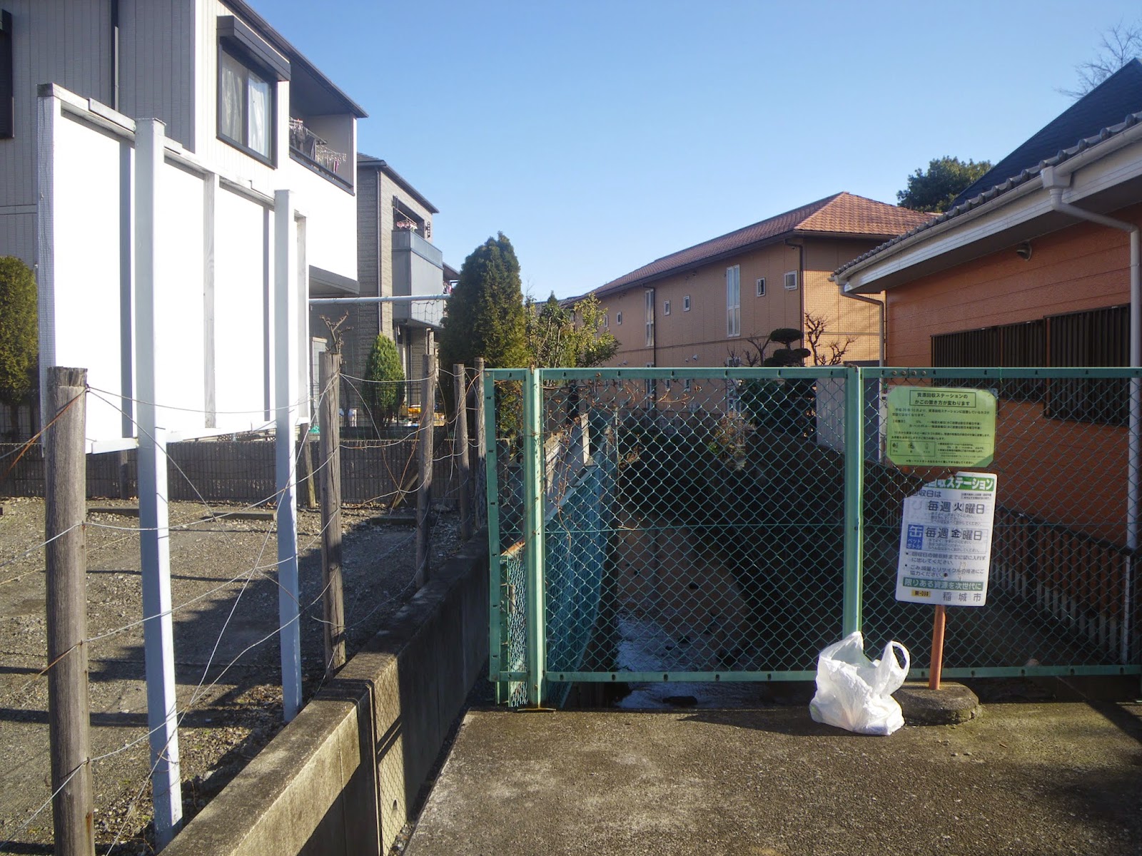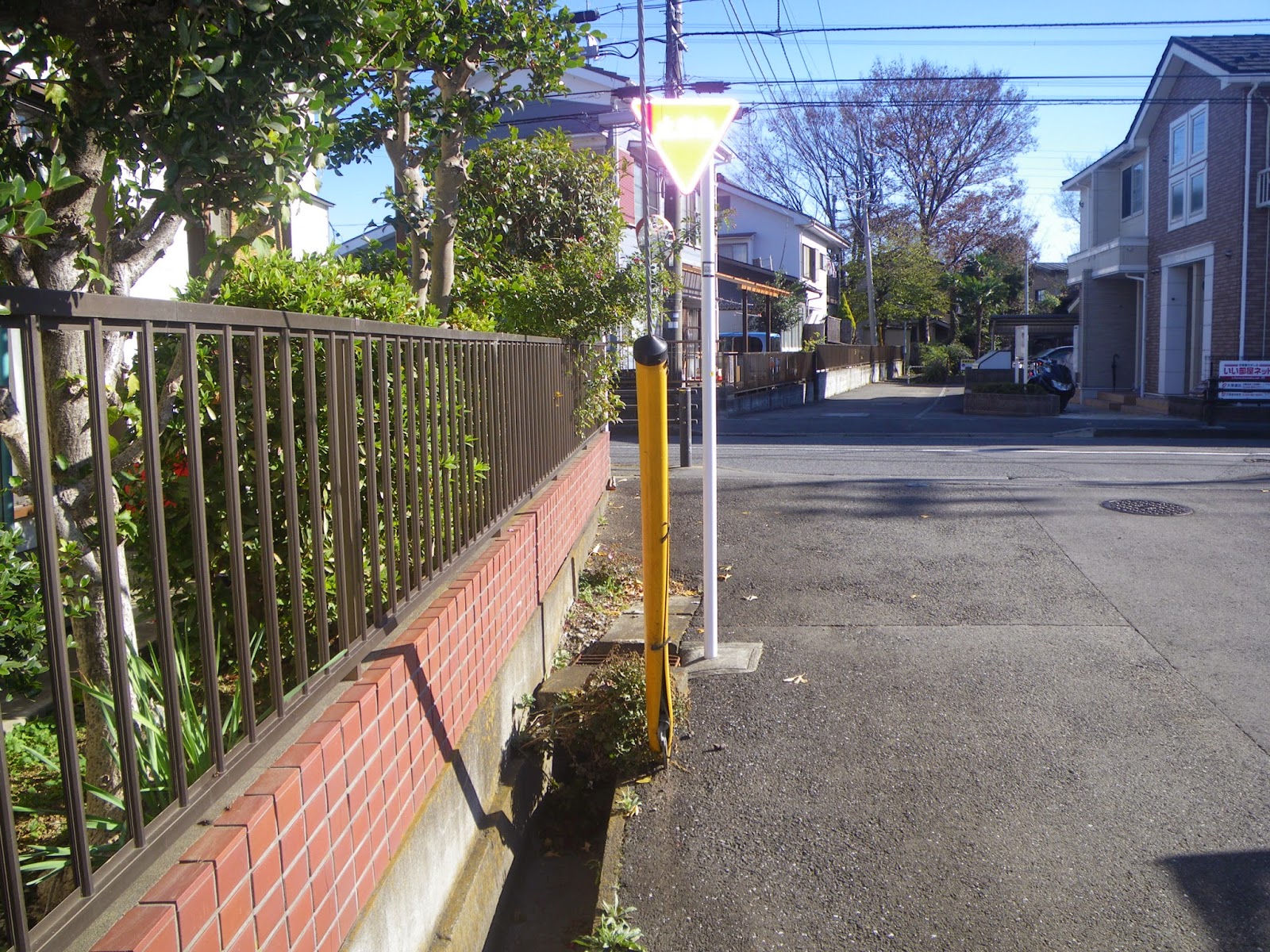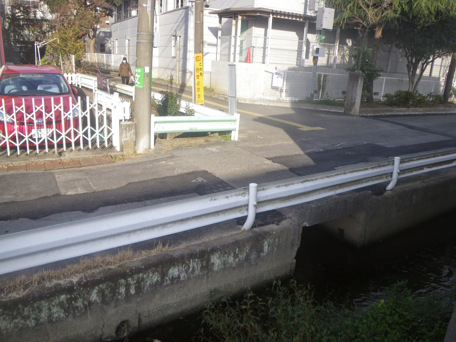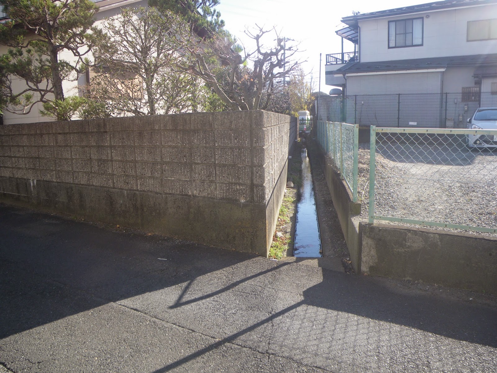 「宿掘」との分流点では宅地工事の影響か、結構「雑」な姿であった「大掘」は民家の間を「しっかり」とした用水の姿に戻って南東に進み、稲城第四保育園の南をぐるりと廻って結構大きな車道に出る
