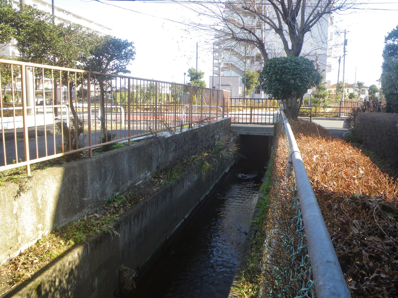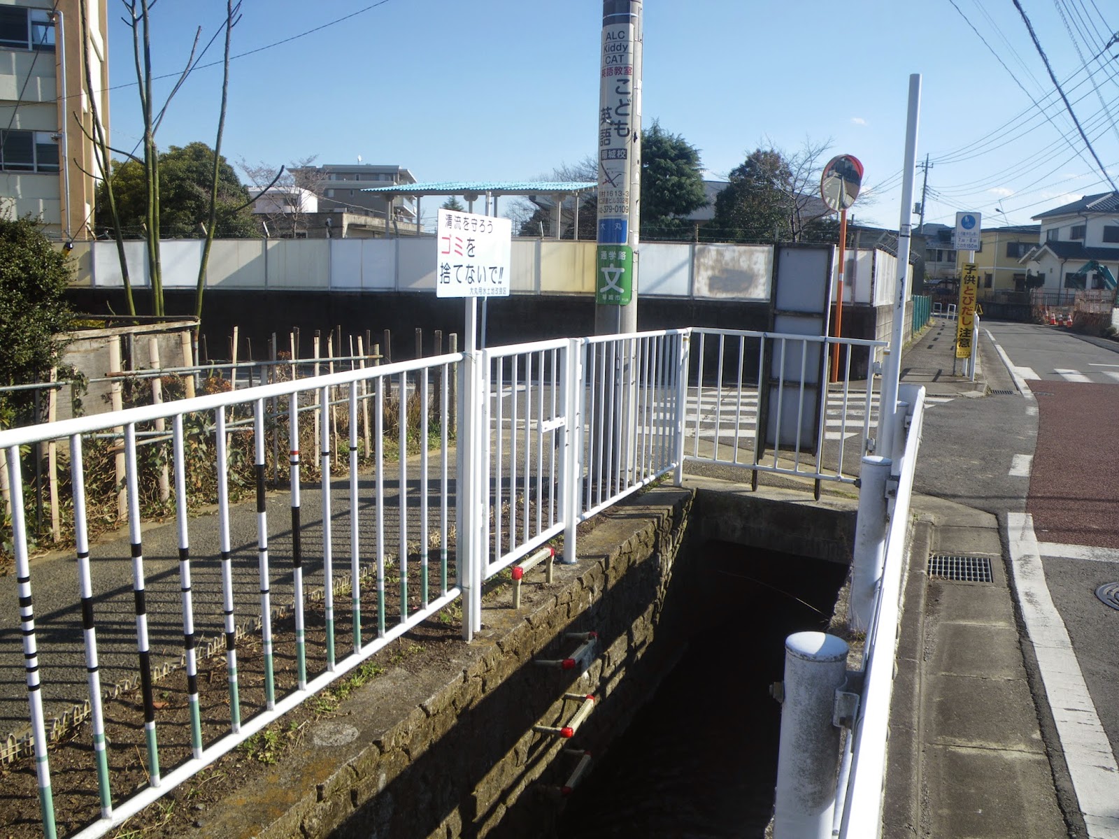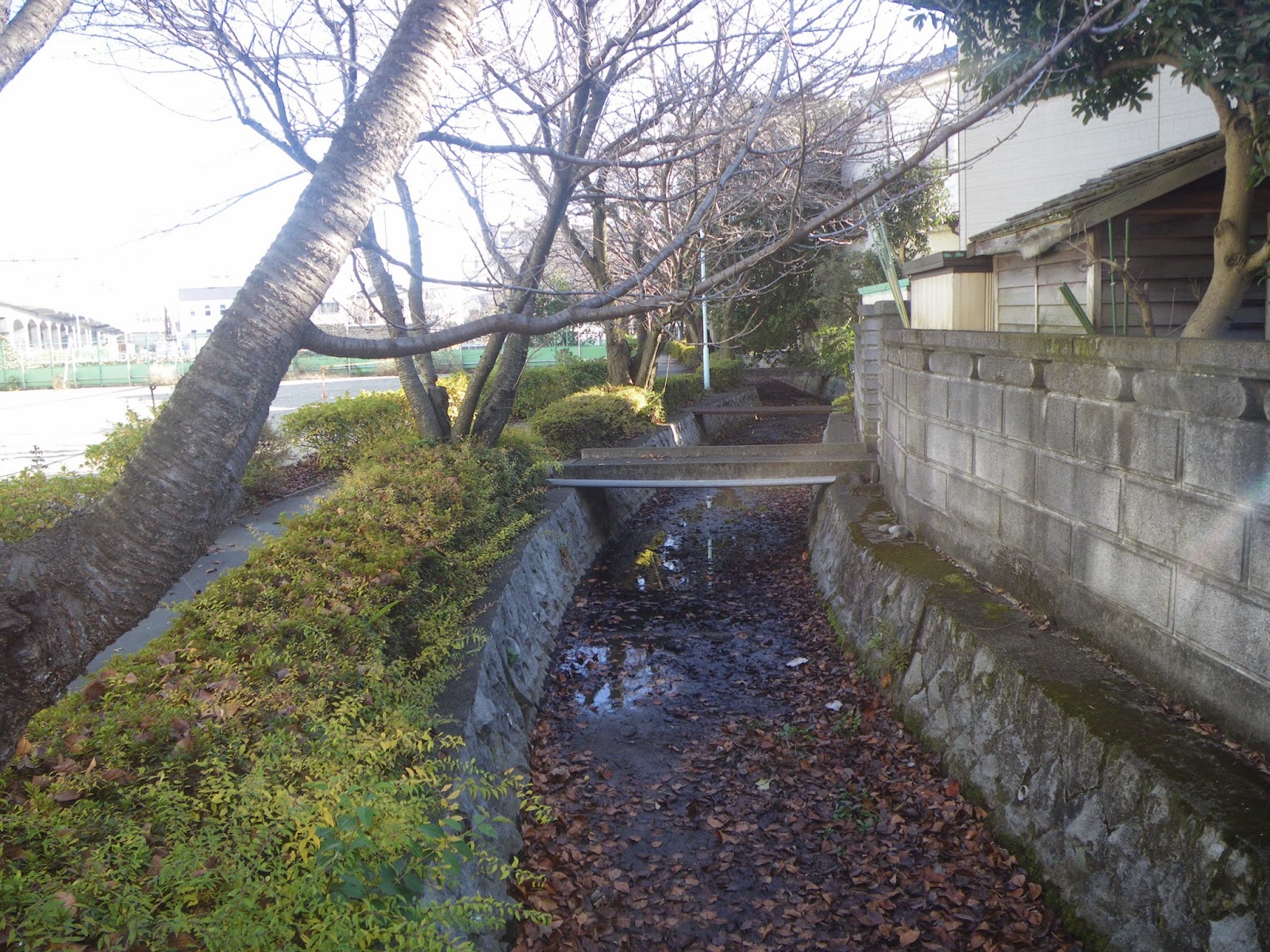 水路は川崎市立菅中学校の校庭に開渠で進む。校庭を抜けると開渠なるが、再び学校の東を敷地に沿って暗渠となって進み、学校敷地南端で左に折れ学校の敷地に沿って進み、中ほどで流路を南に変え開渠となる。