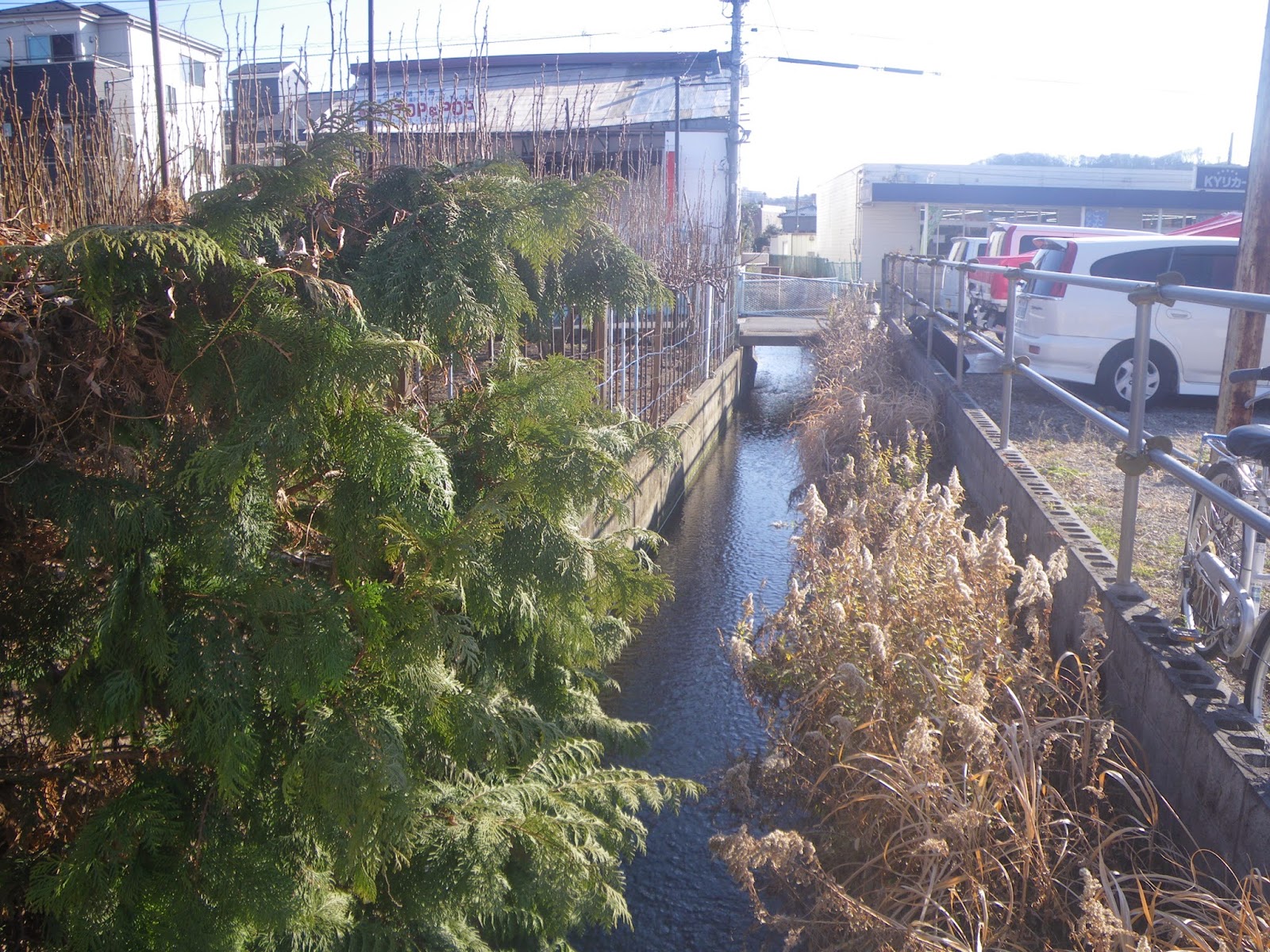 ◎切方掘;「久保掘」が「大堀」に合流する地点で分流し、三沢川に向かって南流し、三沢川の少し北を川に沿って進み、穴沢天神の少し東で三沢川に合流する。