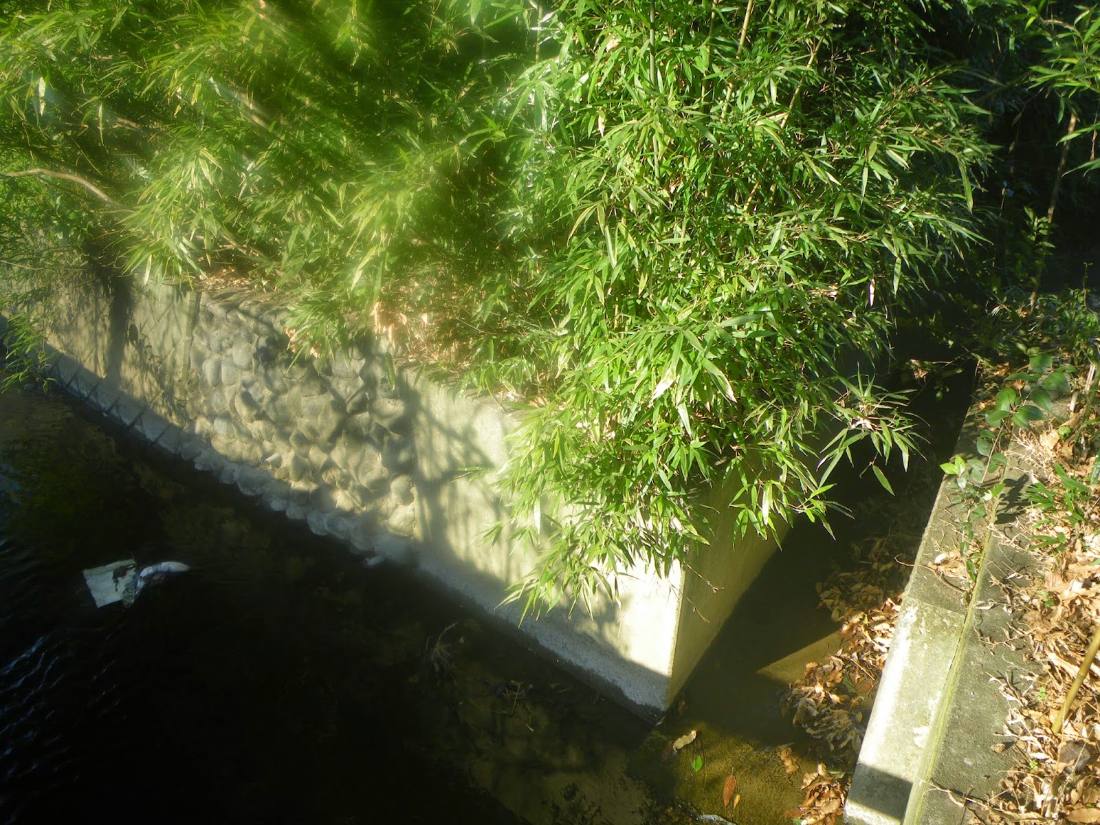 が、その笹薮の先には水路が見えている。「豊堀」であろうから、なんとか合流点を確認しようと、文字通り竹藪漕ぎ。結構丈夫な竹を折り敷き、なんとか藪を抜け「豊堀」の水路に。