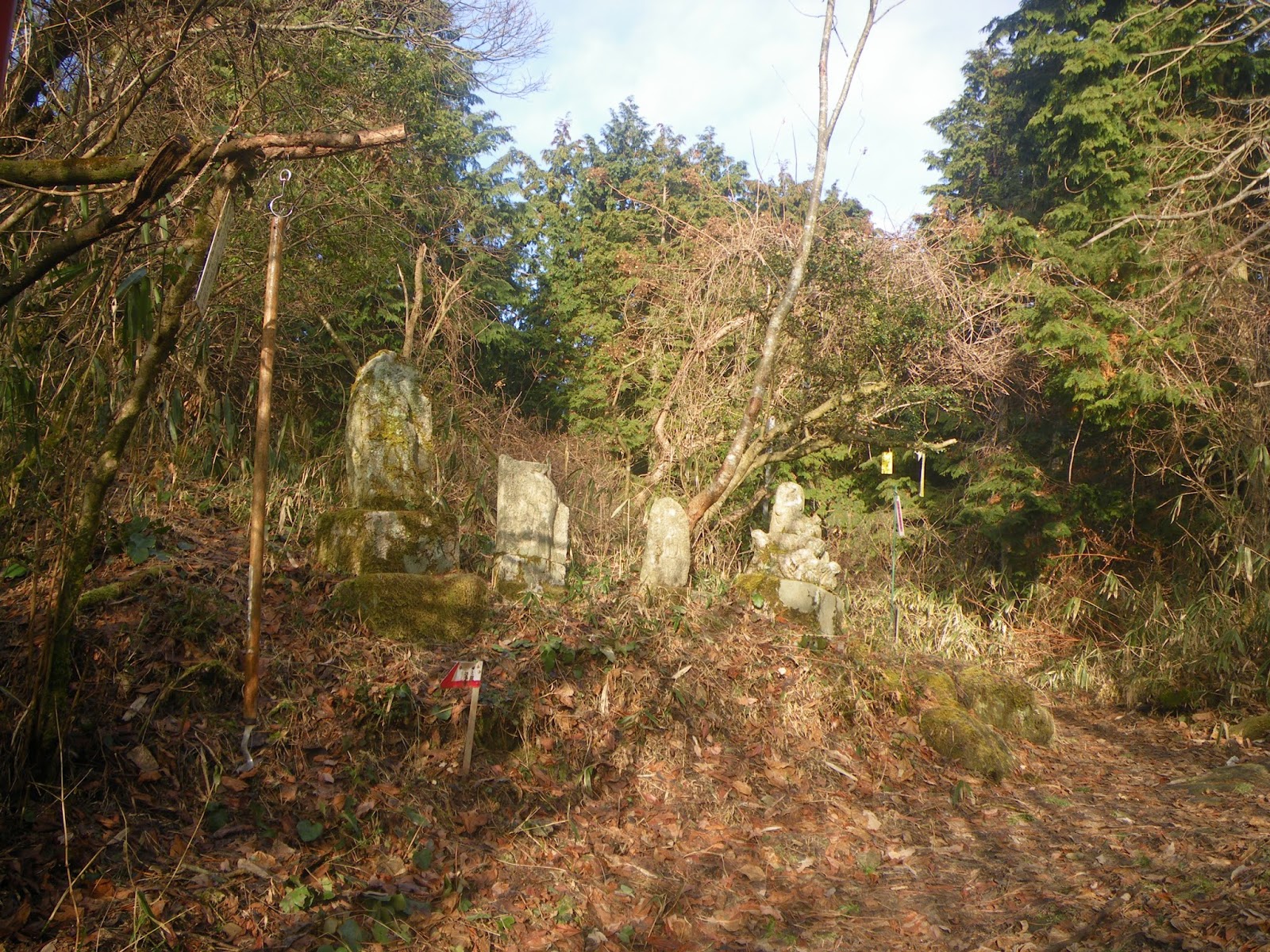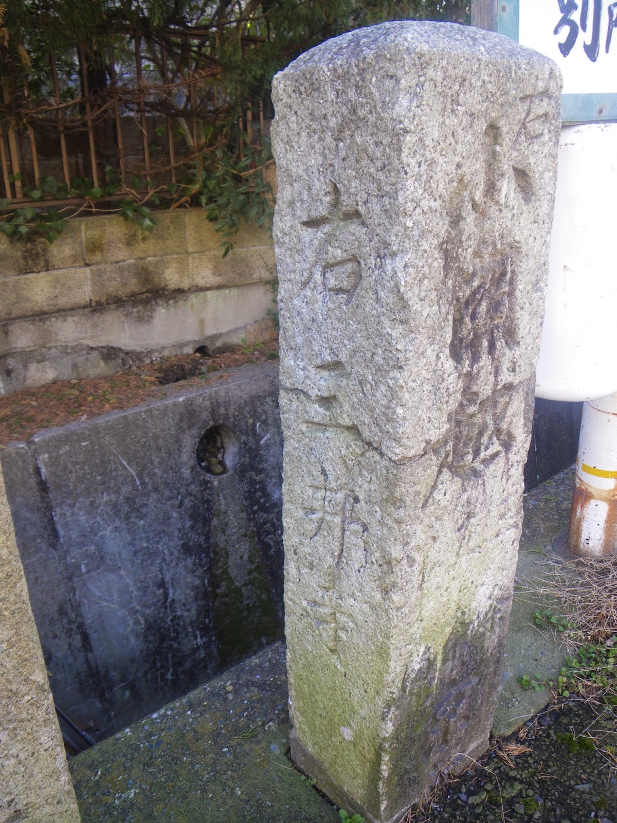 また、この石碑の脇に正面に「小関越」、右側に「右 三井寺」、左側には「左 三井寺」と刻まれた道標が建つ。道標脇にあった案内には「大津市指定文化財有形民俗文化財 石造小関越道標 ;北国海道(西近江路)から別れて藤尾で東海道に合流する約五kmの道は、かつて東海道の間道として小関越と呼ばれていました。