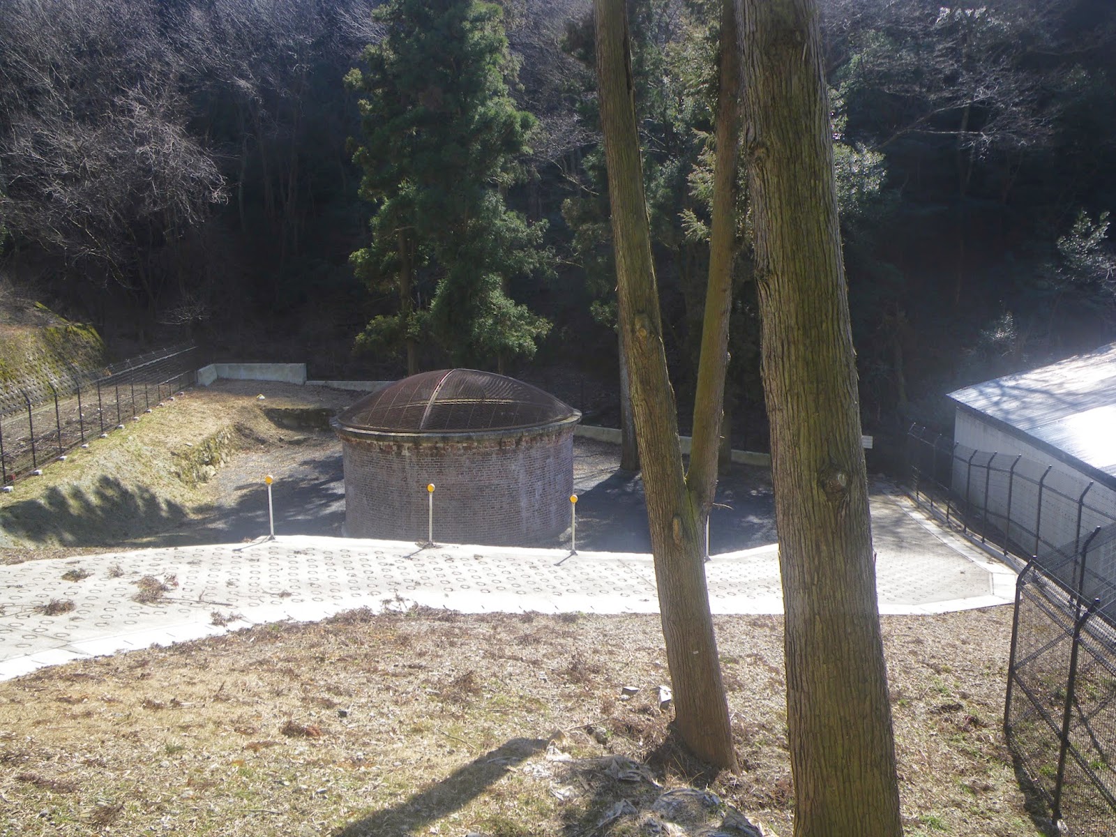鉄柵で囲まれており中に入ることはできない。また特に案内も見つからなかった。あれこれチェックするとこの竪坑の主目的は換気・通風。工事途中で西口から300mほど掘り進んだ辺りで急に換気が悪くなったため、送風機の新設より低コストであった坑道掘削が開始された、とのこと。工期も1ヶ月ほどで、第1竪坑掘削で悩まされた湧水トラブルもなかった、と言う。