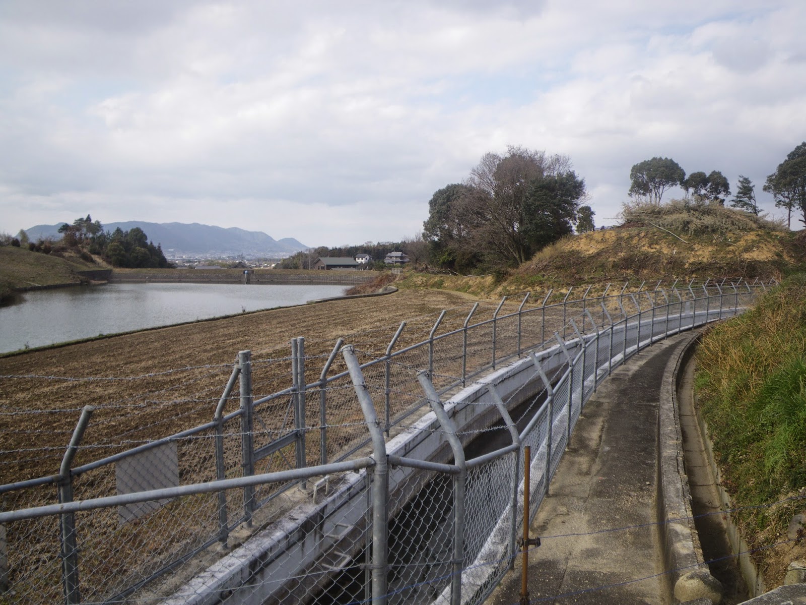 けっこう長かったがやっと香川用水西部幹線水路の最終地点である「姥ヶ懐池」に着いた。「姥ヶ懐池」は安土桃山時代の天正年間には既に利用されていた溜池と言う。広い讃岐平野が愛媛と接する辺り、海にせり出す大谷山から東に延びる台山山系の谷を塞いで造られた、とか。昭和になって改修工事が行われ現在に至る。