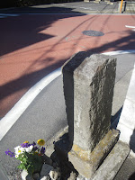 現在の「品川通り」に合わさった「品川道」の地図を眺めていると、「椿地蔵前交差点」が目に入った。名前に惹かれ、狛江道(古品川道)に下る前にちょっと立ち寄り。