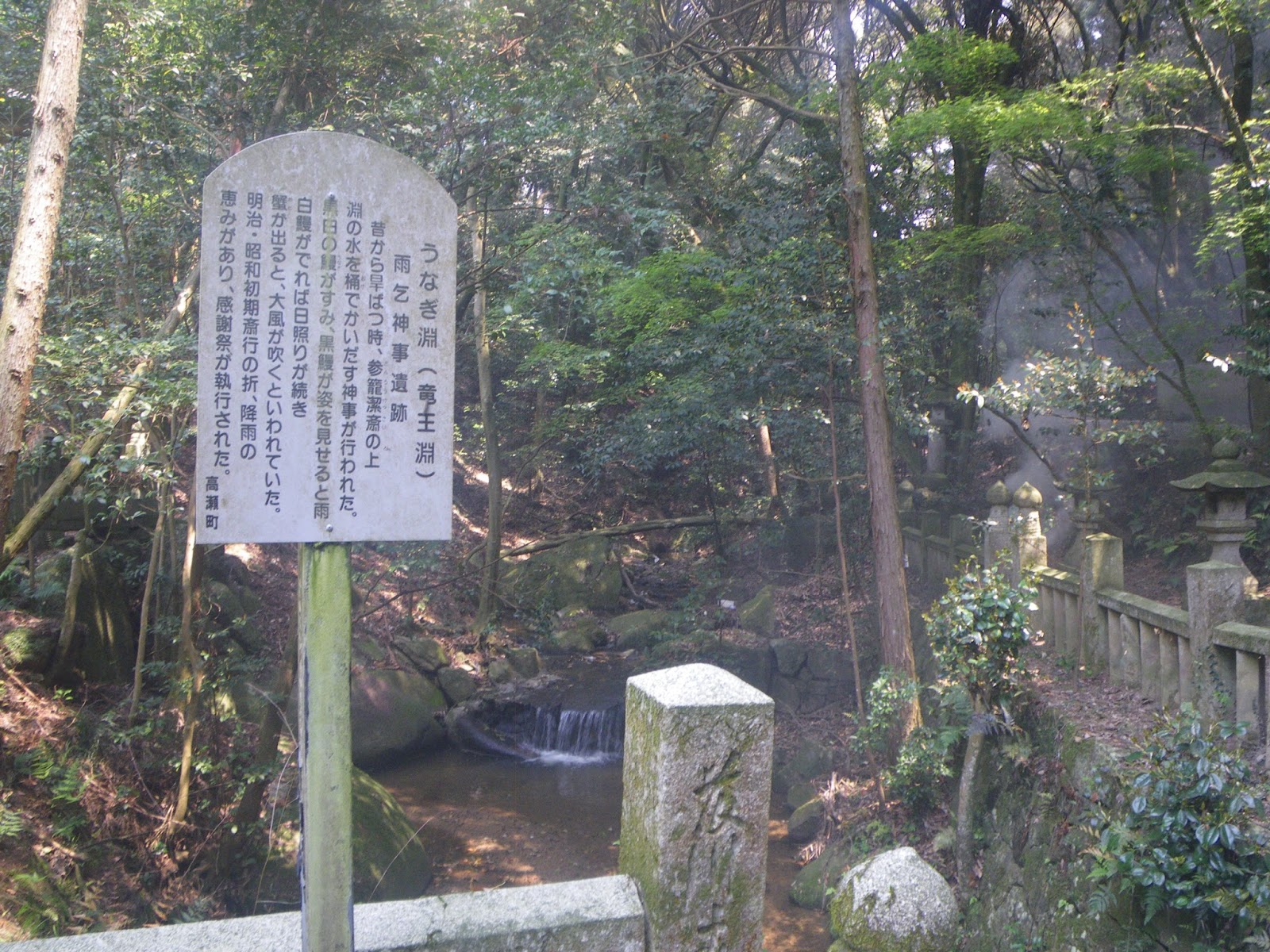 また、うなぎ淵(竜王淵)の先には夫婦岩と称される磐座、「往来は心安かれ空の海 水上清きわれは竜神」と刻まれた空海の句碑があったようだが、見逃した。