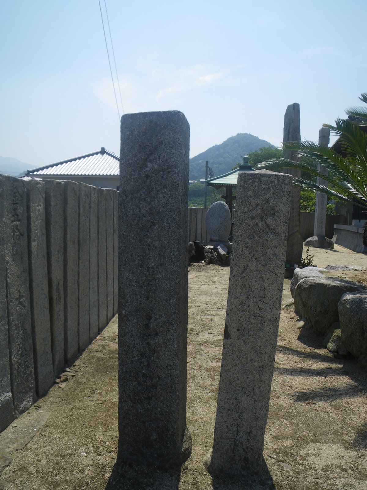 また句碑の側面には「道の辺の阿波のへんろの墓あはれ」と刻まれる。「昭和十年四月十五日、虚子は四国遍路の途上で病没した遍路の墓があるこの西ノ下大師堂を訪れ、鹿島に遊んだ 俳句の里松山(松山市教育委員会)」と案内にあった。大師堂の右、道路際に「阿波のへんろ之墓」と刻まれた墓石が古い石仏と並んで建つ。この墓石を詠んだのかとも想ったのだが、この墓石は後世の作とのこと(「えひめの記憶」)。境内の東には大きな石仏と「備中□阿智□本屋□女墓 文政十一年子七月六日」と刻まれた墓石が残っていた(お墓の写真は撮らないことにしている)。