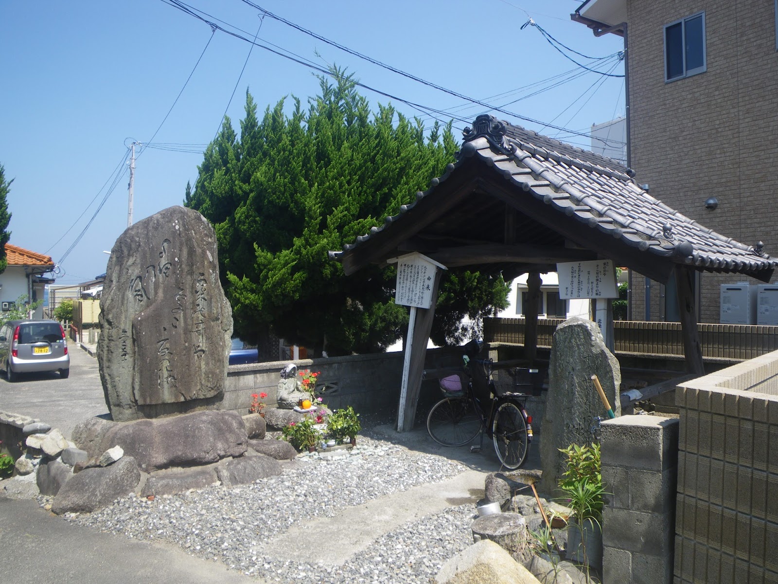 学信和尚とは、さきほど河野通清供養塔の自然石に刻まれていたお坊さんである。昔は、崖下にあったようだが周囲を埋め立てたため井戸の型にして後世に残したもの、とのこと。