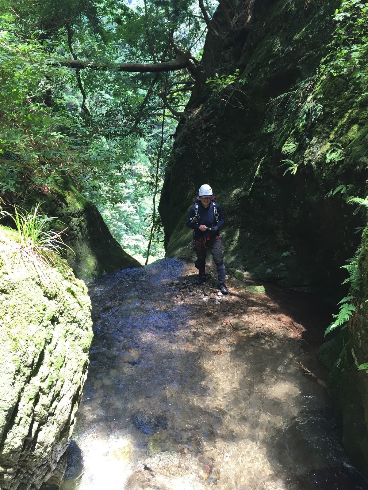 で、結果は予想通り。入渓早々に枝沢に迷い込み、途中で引き返す。滝は難しいものは何もなく、苔むした美しい渓谷で一日沢登り、というか水遊びを楽しんだ。