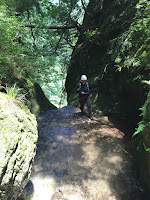 初心者向けの沢では裏高尾の小下沢や秋川筋の月夜見川、そして小坂志川下流域などが想い浮かぶが、小下沢は沢上りというより水遊び、月夜見沢も小下沢ほどではないが、それでも基本沢登り、というほどでなない。それに比べてこの沢は渓流美や巨大な岩から流れ落ちる滝、それも難しい滝はなにもないのが、いい。それなりに沢登りの雰囲気も楽しめる。