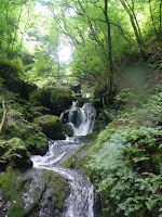 小さな滝もなく、渓流といった沢を進むが、地図で確認した左から合わさる沢がいつまでたっても登場しない。それでも、もう少し、と先に進むと沢沿いの道を家族連れが下りてきた。大滝を見物に行ったのだろうと「この先に大きな滝はありましたか?」と聞くが、「大きいといえば大きい、といった滝はあった」との返事。「大滝」といった印象ではないのだが、もう少し進むと、10m弱の滑気味の滝があった。家族が見た滝はこれだろう。どうも大滝に進んでるように思えないようだ。