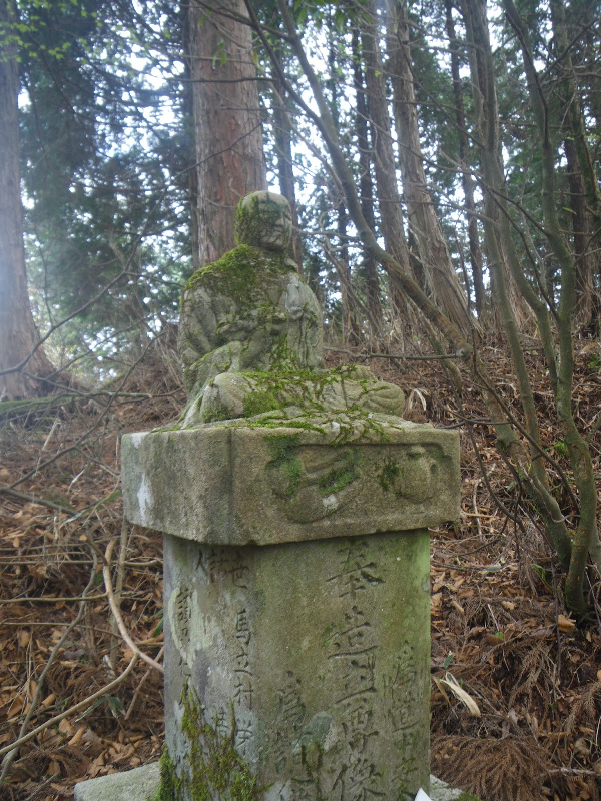 いまひとつ説明内容がわからないため、チェックすると、前述『予土の峠をゆく』に拠れば、台座の正面に「奉造立尊像者 為道中安全 為諸人快楽 」、右には「安政五年 願主 栄谷(さかしだに)種治」左に「世話人馬立村 栄谷清助 忠吉 讃州 仁尾九兵衛」と刻まれる、と。