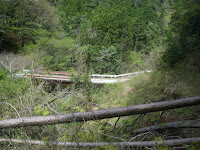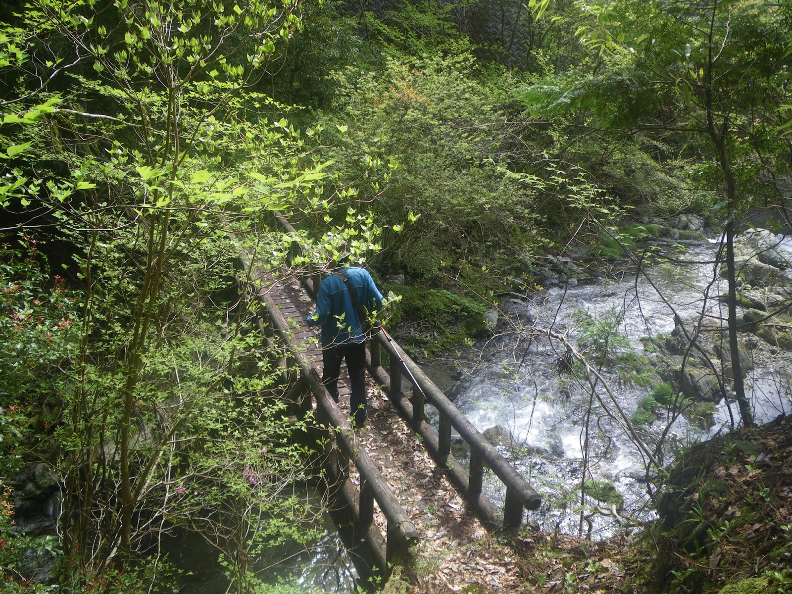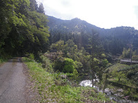 結構道を進むと土砂崩れで通行止め。この復旧には「今年一杯通行止め」といった工事案内があったように思う。さて、どうする。少し考える。県道峠にある笹ヶ峰トンネルまで800mほど。トンネルからデポ予定・登山口の出会橋まで6キロ弱。元に戻ってピストンは論外として、笹ヶ峰トンネルから直接笹ヶ峰の峠に上り、そこから車をデポした総野橋に戻るか、2キロ強ほど県道を歩き、県道を離れ出会橋からの登山道を2キロ弱ほどピストンするか、との選択肢。結局、県道を進み、登山道を出会橋まで下り、ピストンで出会橋から笹ヶ峰へ上り返すことにした。