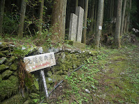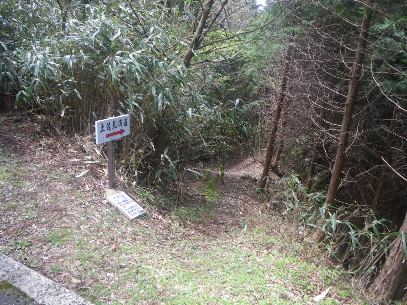 県道を数分すすむと「左 土佐北街道(古代官道調査保存)」の案内と、「史跡 駕籠立て 参勤交代の折り、笹ヶ峰を越すため駕籠を休め隊形を建て直したところといわれている(この上50m)立川御殿保存会」とあった。